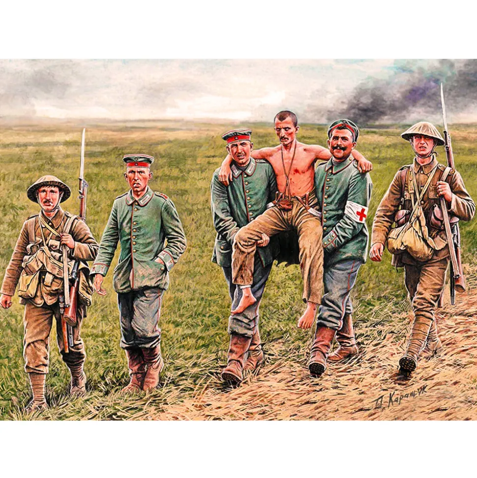 Ce set comprend 6 figurines (3 soldats anglais et 3 soldats allemands). Nombre de pièces : 59.Peintures LifeColor recommandées : LC41 / LC67 / LC26 / LC24 / LC15 / LC74 / UA097 / UA005 / UA029.