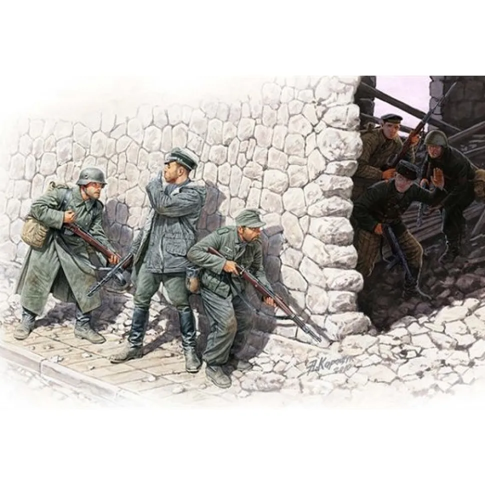 Caractéristiques détaillées : Figurines 2ème Guerre Mondiale : Rencontre fortuite : Gebirgsjäger allemands et marins soviétiques :