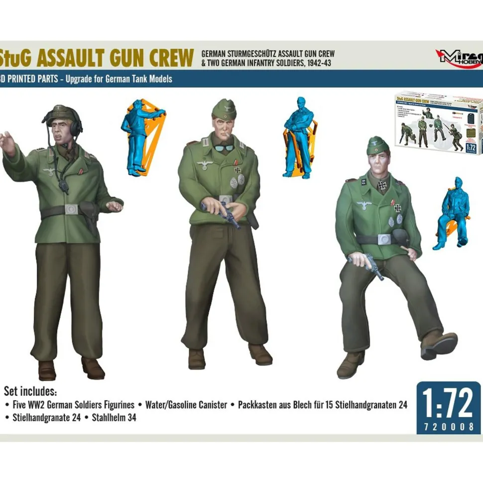 MIRAGE HOBBY 720008 1:72 ÉQUIPAGE DE CANON D’ASSAUT ALLEMAND STURMGESCHÜTZ ET DEUX SOLDATS D’INFANTERIE ALLEMANDS, 1942-43