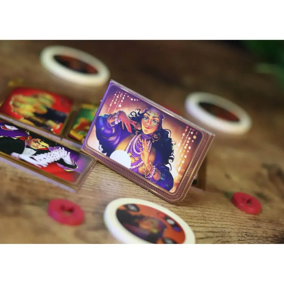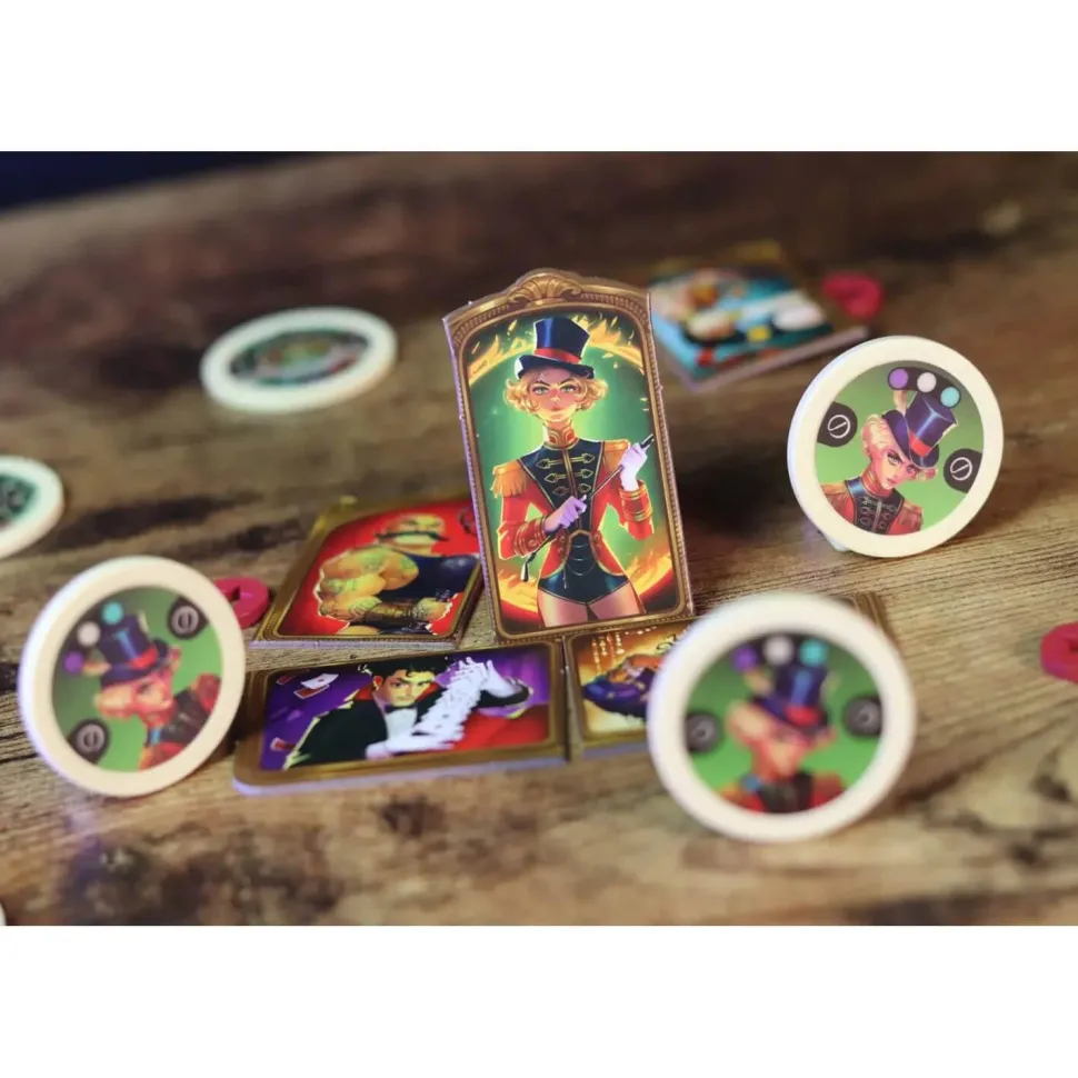 Avec des tactiques élaborées et des décisions cruciales, ce jeu vous met au défi de devenir le maître du spectacle. Planifiez astucieusement vos mouvements, en activant les artistes talentueux et en orchestrant des performances spectaculaires. Ce jeu reposera sur la manipulation habile des jetons personnages, chacun portant en lui un pouvoir unique.