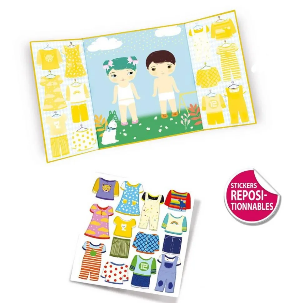 Nous vous proposons des gommettes repositionnables Djeco pour que vos bouts de chou apprennent à distinguer les vêtements. Ils découvriront une foison de gommettes à coller librement; elles sont faciles à attraper pour les petits comme pour les grands afin que tout le monde puisse en profiter. Le décor va permettre à vos petits designers de s’amuser et assembler les tenues selon leur imagination.