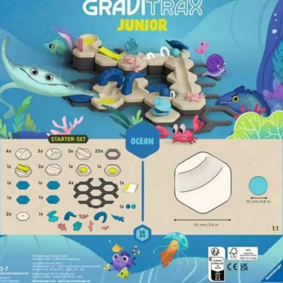 GraviTrax Junior permet aux enfants dès 3 ans de s’initier à la construction de circuits de billes à travers le thème de l’Océan, avec des matériaux biosourcées.Votre enfant thématise ses circuits et plonge dans un monde magique et coloré GraviTrax pour créer ses plus belles histoires ! Construisez un circuit et modifiez-le : GraviTrax se reconstruit à l’infini !