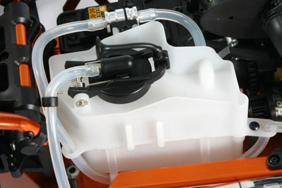 Sous le châssis, vous trouverez des servos Savox de haute qualité en standard, ainsi que le puissant moteur HoBao MachStar 28 et la pipe polie. Les pièces du châssis en aluminium anodisé, codées en couleur gris furtif, complètent l’assemblage de l’arceau pour un look accrocheur. La nouvelle suspension avant à moyeu en C et les amortisseurs de 17 mm à gros alésage absorbent tout ce qui se trouve sur leur chemin, tandis que les réservoirs de carburant surdimensionnés de 150 cm3 vous offrent un peu plus de plaisir entre les arrêts pour faire le plein !