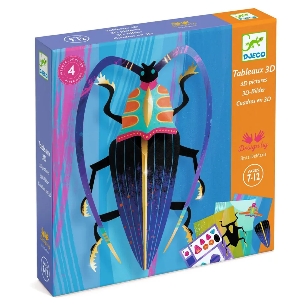 Un coffret qui allie pliage et collage pour réaliser 4 magnifiques insectes en volume aux reflets dorés ! L’enfant plie puis les assemble les pièces de papier et carton prédécoupées : colle, double face, stickers, tout le matériel est fourni. Quelle fierté d’avoir fabriqué de ses propres mains ces magnifiques trophées design et colorés ! Il ne reste plus qu’à les accrocher. Contenu : 4 planches illustrées en carton (15 x 20 cm), des pièces de carton ondulé, 23 pièces de papier, 1 planche de stickers, 1 planche d’adhésifs double-face en mousse, 1 tube de colle, 1 livret d’explications pas à pas en couleurs.