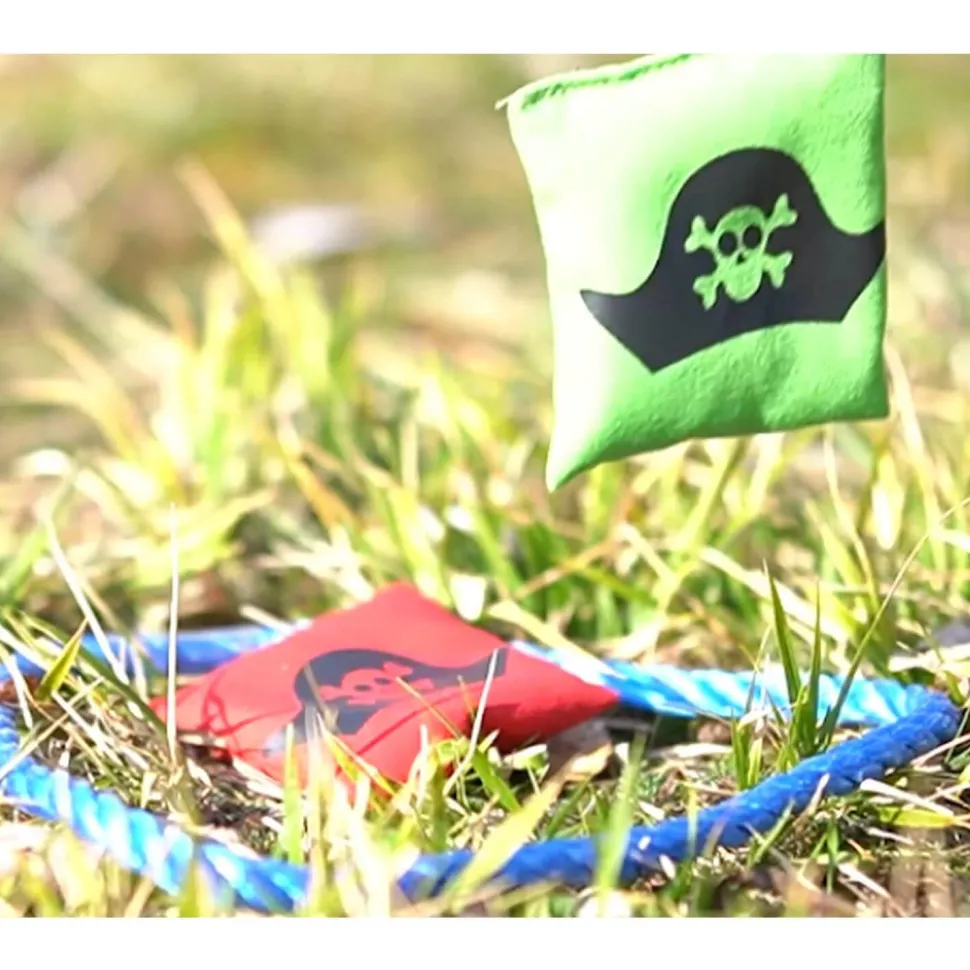 Comme tous les jeux de la marque, Presto Pirates est un jeu d’extérieur nomade qui peut se jouer sur n’importe quelle surface, facile à installer et facile à transporter. Il plaira aux petits dès 6 ans comme aux plus grands. Dans Presto Pirates, vous incarnez des pirates et devez sortir du lagon le plus vite possible en passant d’île en île. Les îles sont représentées par des anneaux de cordage de 17 cm de diamètre. En équipe, votre objectif est de lancer vos pochons pirates dans les anneaux pour sauter d’île en île mais attention, les adversaires peuvent saboter et gêner votre capitaine alors faites preuve de stratégie et protéger votre capitaine pour emmener votre équipe vers la victoire !