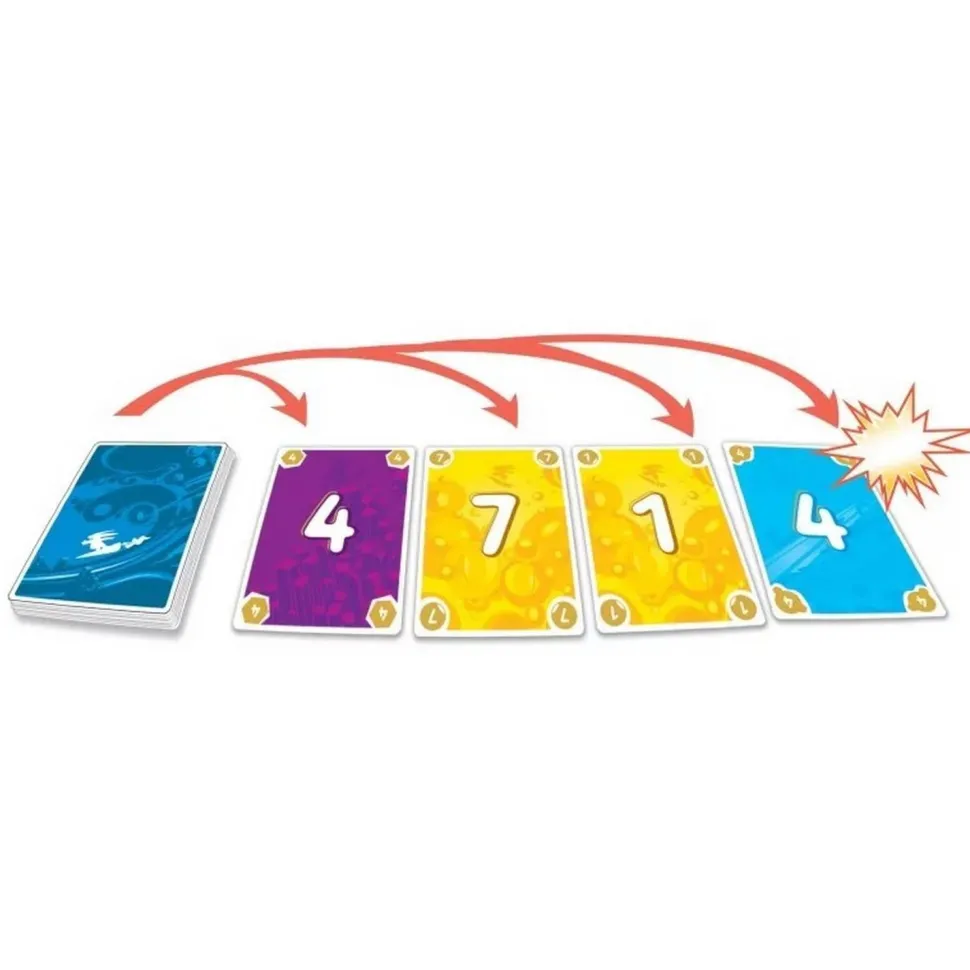 Dans Bango, marquez un maximum de points. Créez jusqu’à trois suites de cartes devant vous en révélant des cartes une par une. Mais attention : allez trop loin et vous risquez une explosion qui compromettra votre plan !