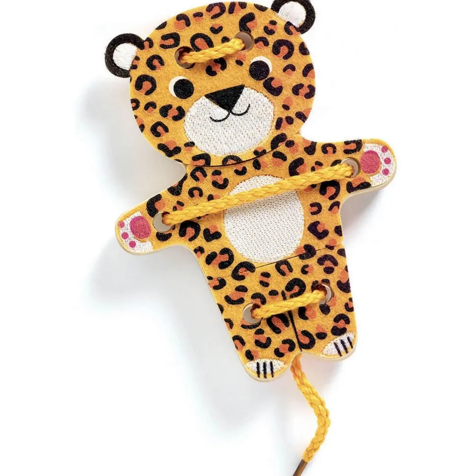 FeltMix est un jeu de laçage mix and match. À l’aide du support en bois et des cordons, l’enfant s’amusera à lacer les parties du corps en feutrine des animaux pour reconstituer le crocodile, le zèbre, le léopard et le perroquet, mais aussi créer des animaux loufoques. Avec ce jeu, votre enfant va apprendre la technique du laçage et développer sa motricité fine et sa dextérité. Avec sa feutrine brodée et imprimée, ces animaux ont une couleur différente par animal afin de faciliter sa reconnaissance.