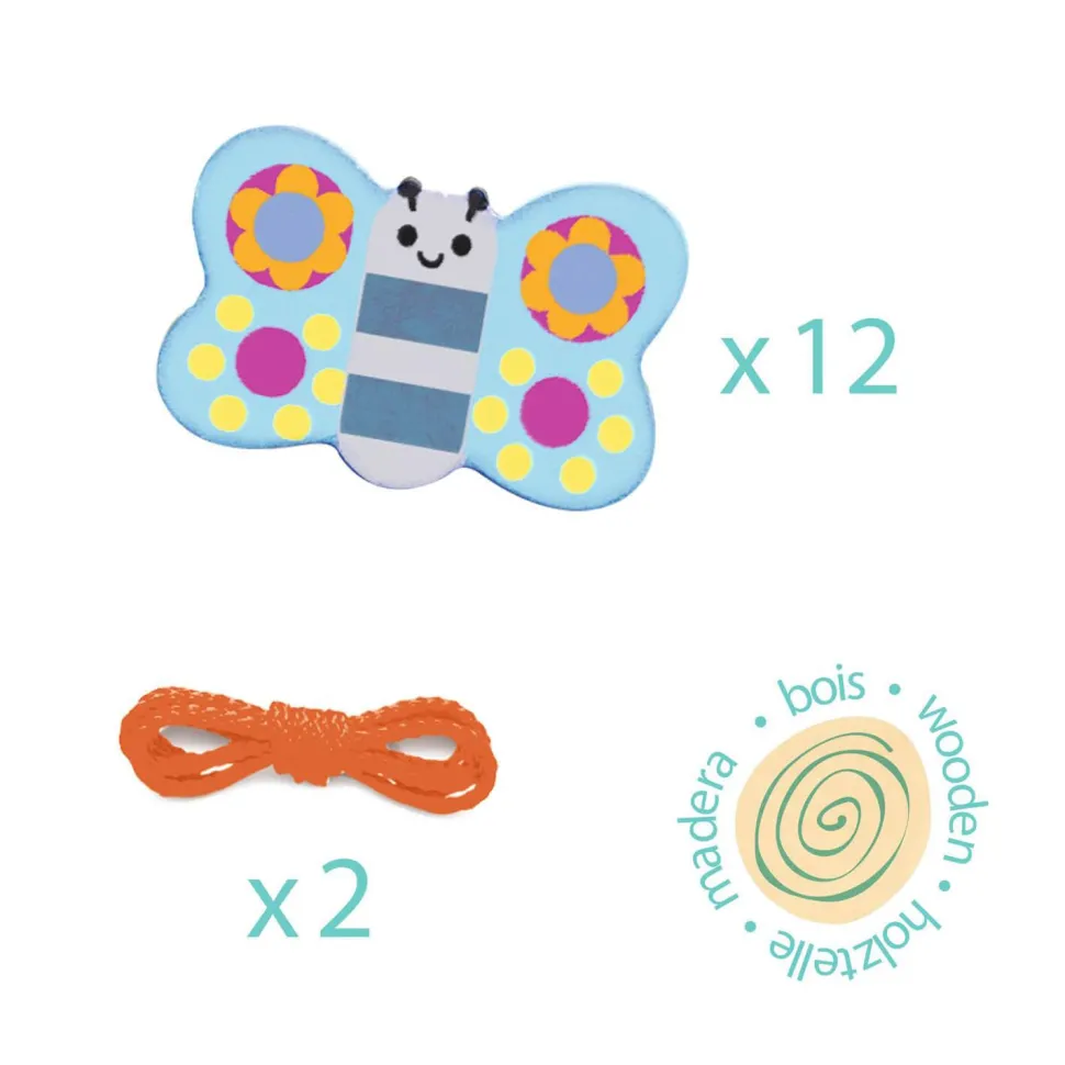Contenu : 8 perles, 4 planches en bois et 2 lacets.