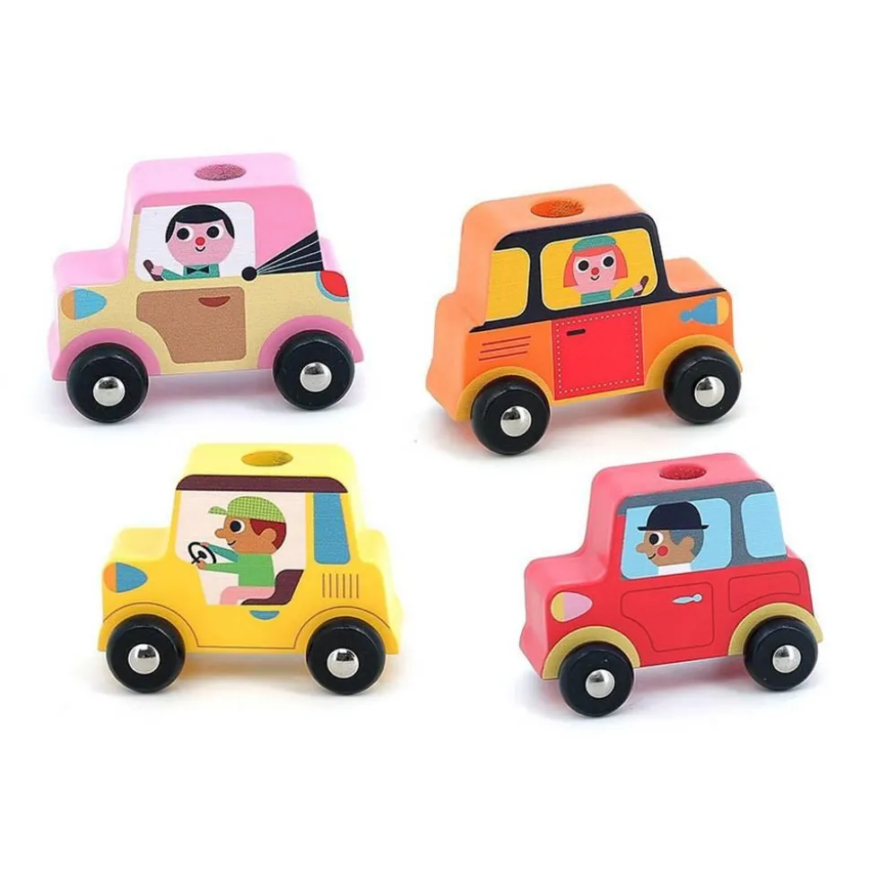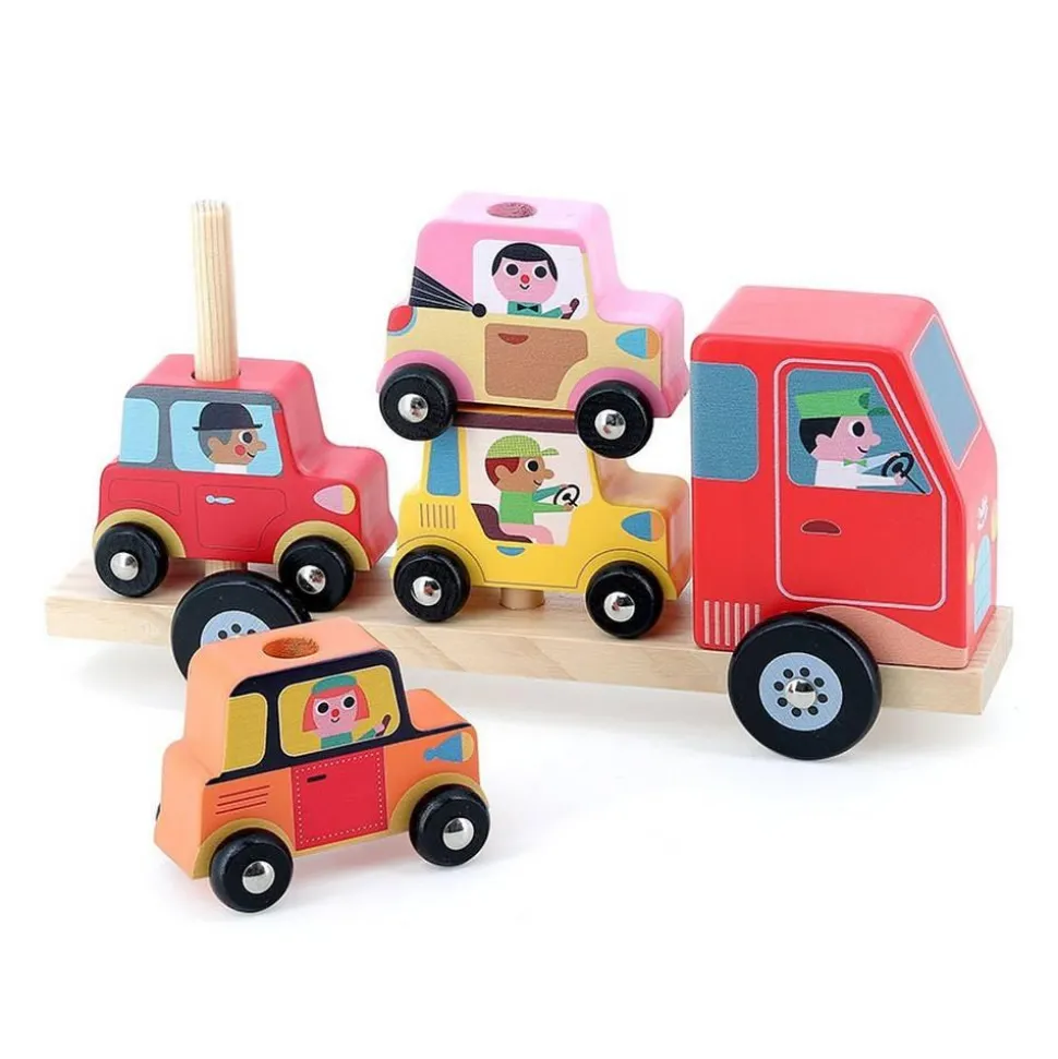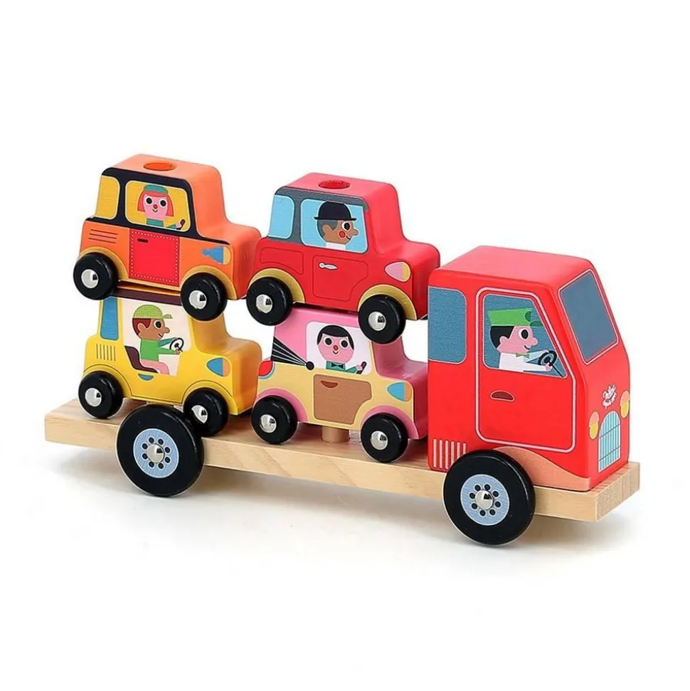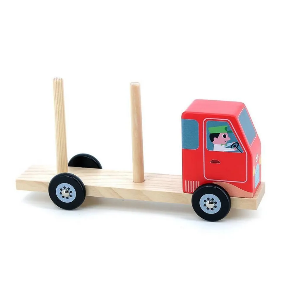 Votre enfant va craquer pour les différents véhicules en bois, le camion rouge, et les multiples associations possibles sur la grande remorque. C’est parti pour une virée en ville. Les 4 voitures en bois peuvent s’empiler les unes sur les autres ou être utilisées en jeu libre par votre enfant. Prêt(e) à prendre la route ?