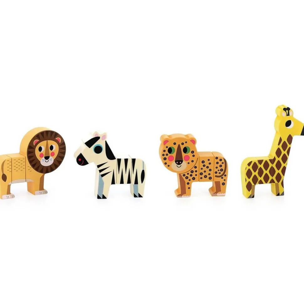 Contenu du jeu : 4 animaux de la savane aimantés en bois à recomposer (12 pièces au total).