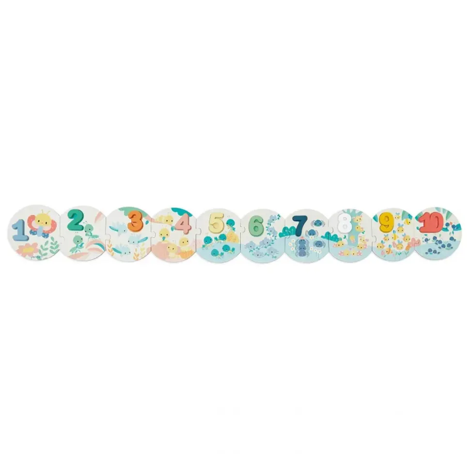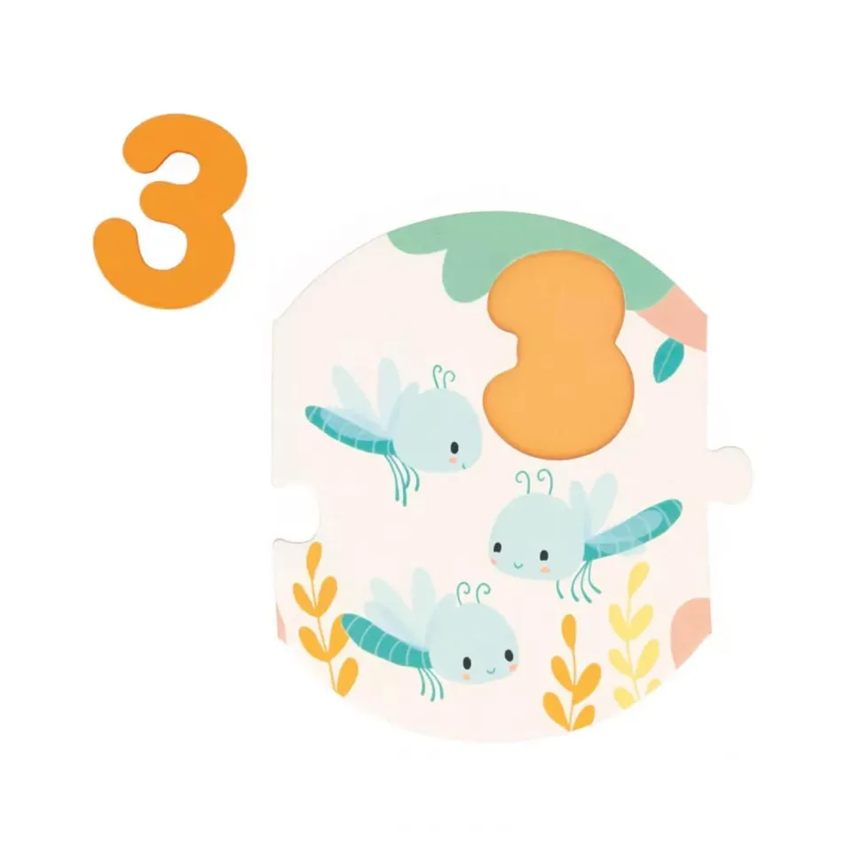 Apprentissage des chiffres en douceur avec ce magnifique puzzle en carton avec encastrement de chiffres colorés en bois ! Les animaux sont de la partie pour aider les petits à partir de 2 ans à compter jusqu’à 10, c’est encore plus amusant !