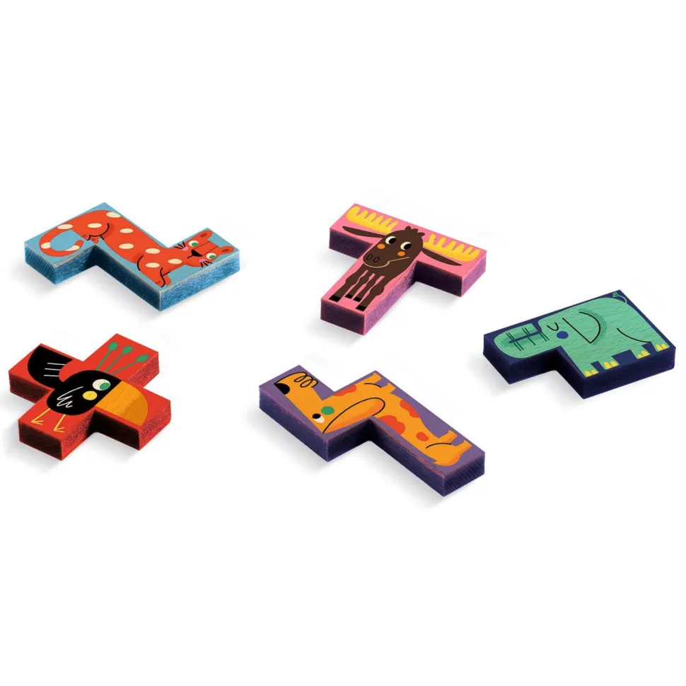 Un jeu de logique. Assembler les 7 animaux sur un plateau nécessite une bonne dose de réflexion, surtout pour savoir quel animal manque à l’appel ! Contenu : 30 cartes-défis, 7 pièces en bois et 1 plateau-support en bois. Règle du jeu en 10 langues.