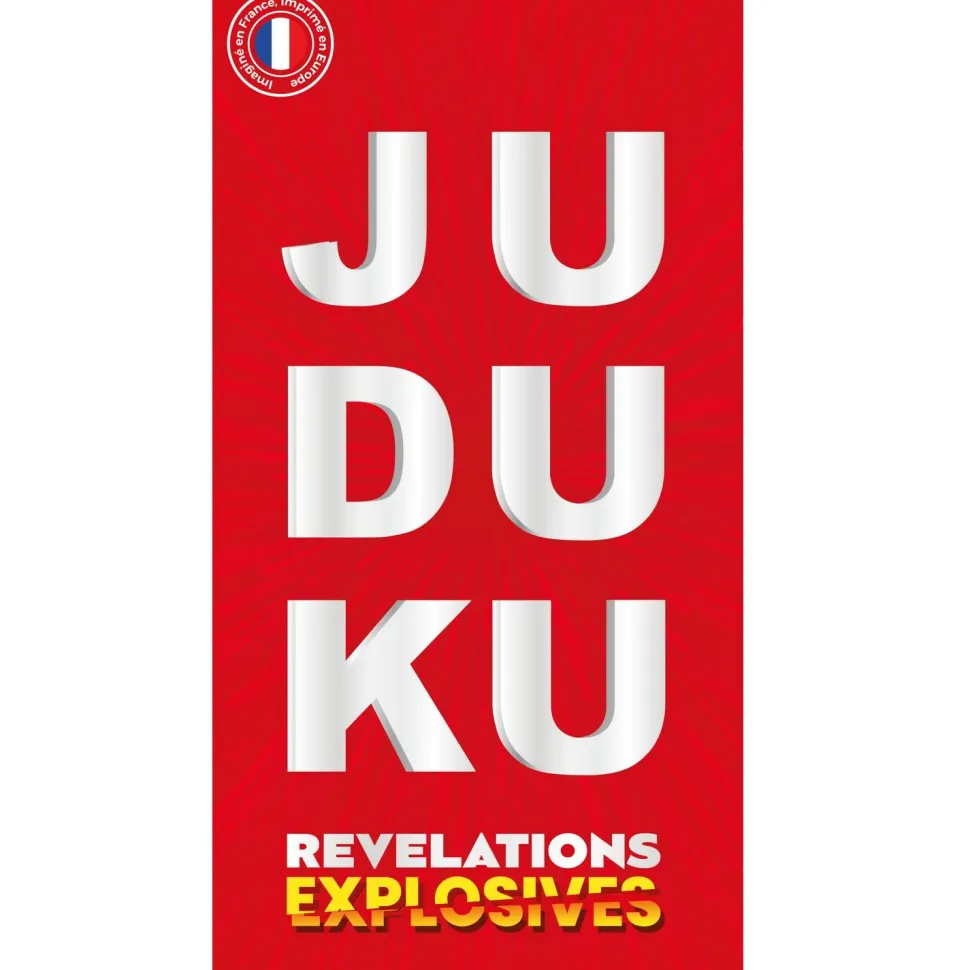 JUDUKU : Révélations Explosives reprend le principe de base qui a fait le succès de JUDUKU. Répondre en 8 secondes à la question posée par le maître du JUDUKU ! Nouveau : des cartes spéciales Mort Subite et Mimes pour des réponses toujours plus pimentées et des situations hilarantes.