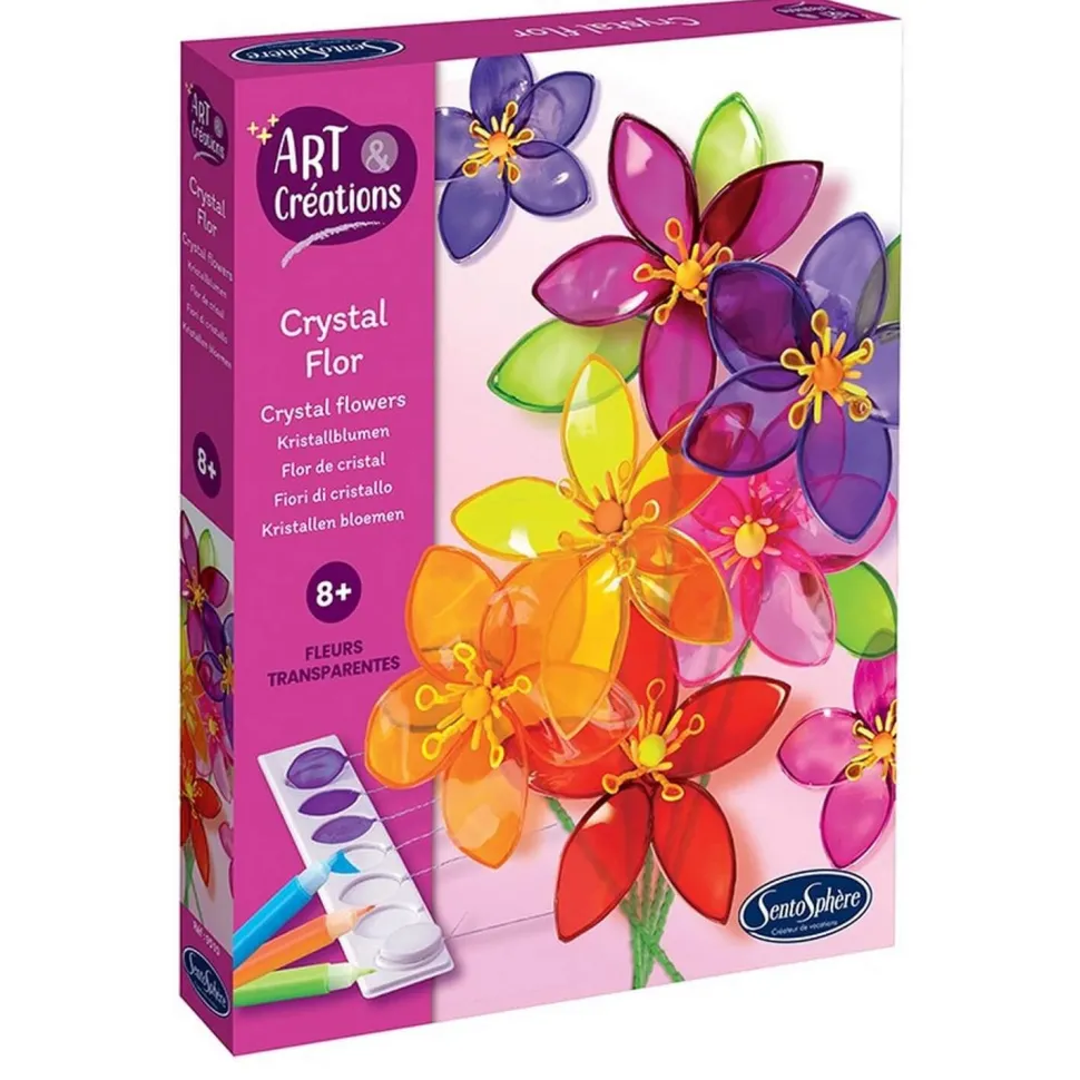Le kit créatif Crystal Flor de la gamme Art & Créations de Sentosphère est une activité manuelle créative qui mélange moulage, assemblage et pate à modeler !