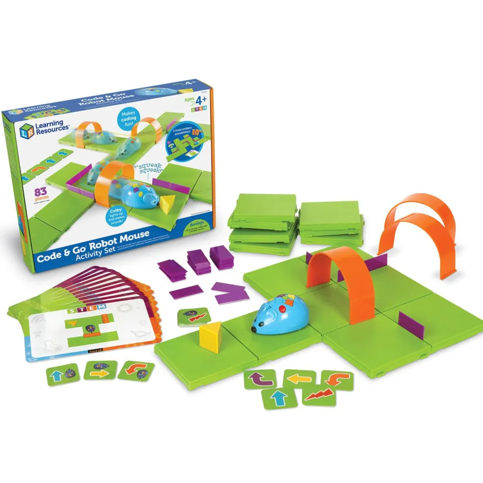 Spécialement conçu pour susciter l’intérêt des enfants pour la science, la technologie, l’ingénierie et les mathématiques, ce kit d’initiation au codage tout en couleurs permet aux jeunes enfants de mettre leur apprentissage STEM en pratique ! Les jeunes enfants vont ainsi découvrir les concepts élémentaires de codage et de programmation avec Colby, la souris robot. Ils programment une séquence de déplacements pour permettre à la souris de trouver son chemin jusqu’au morceau de fromage dans diverses formes de labyrinthe. Cet ensemble fascinant comprend 16 pièces de plateau, 22 murs de labyrinthe, 3 tunnels, 30 cartes de codage recto-verso, 10 cartes d’activités de labyrinthe recto-verso, un morceau de fromage en plastique et un guide d’activités.