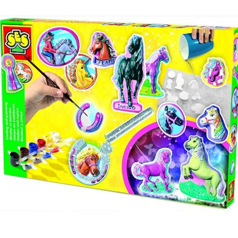 Ce kit complet de moulage propose des créations sur un thème très apprécié des plus petits : les chevaux. Idéal pour les initier au plaisir du moulage.Grâce à ce kit, fabriquez 12 modèles de chevaux différents en plâtre.Contenu : – Plâtre,- Moules,- Peinture,- Paillettes,- Pinceau.Hauteur des moules : 2 à 8 cm. Dimensions de la boîte : 30 x 20 x 3 cm.
