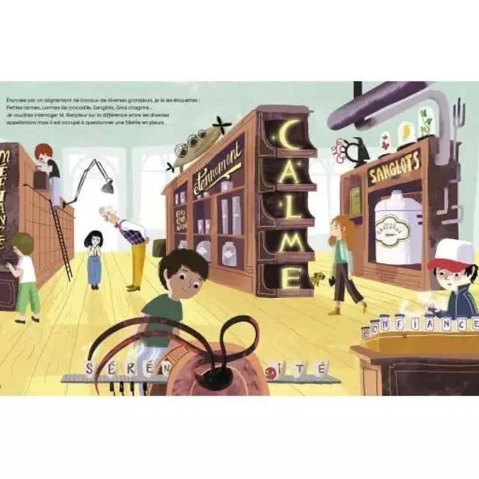 Dans la boutique des émotions, pas besoin d’argent ! Les enfants veulent se débarrasser d’une émotions trop forte ? Ils peuvent l’échanger dans la boutique de M. Rietpleur. Il y a l’étagère des bocaux à chagrins, le tourniquet des gros-mots, la malle aux cauchemars, la boite à rires… il n’y a qu’à se servir.