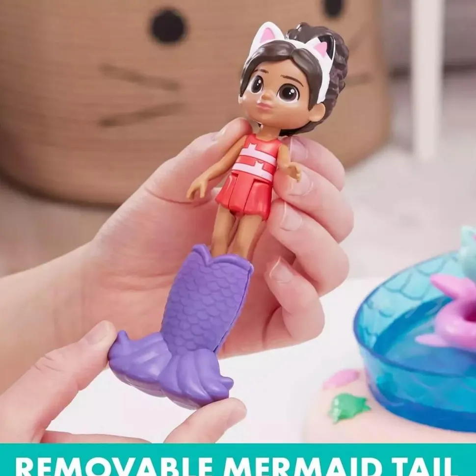 – Dimensions approximatives de la figurine Gabby avec queue de sirène : 9 cm de haut, 4 cm de large et 2,5 cm de profondeur.