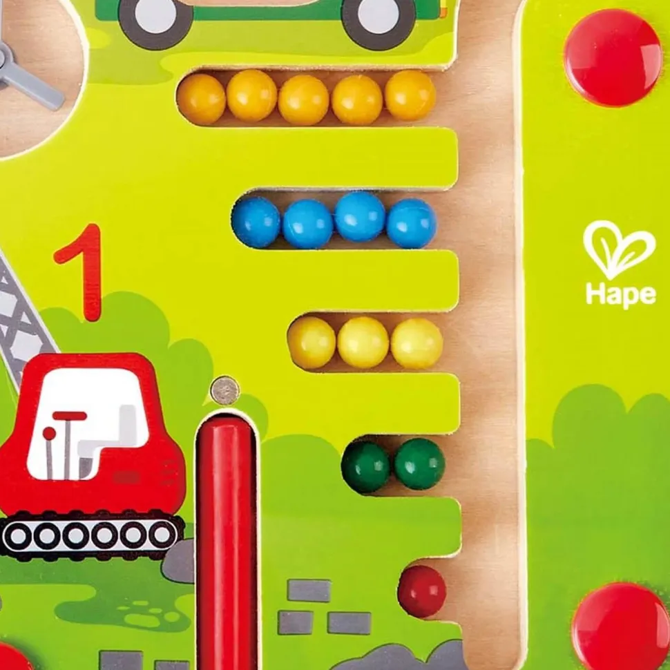 Votre enfant pourra faire glisser les billes en inclinant le plateau de jeu ou en utilisant le petit stylo magnétique qui guidera les billes le long des chemins, virages et portes à tambour du labyrinthe.