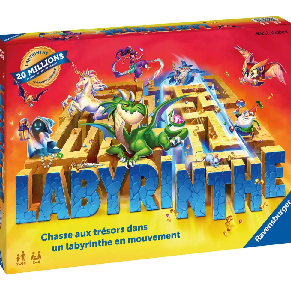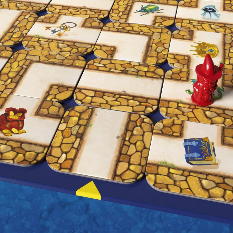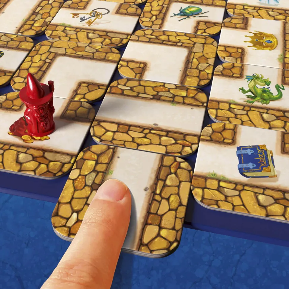 Chasse aux trésors dans un labyrinthe en mouvement.Contenu : – 1 plateau avec 15 couloirs fixes, – 34 cartes « labyrinthe », – 24 cartes « trésor », – 4 pions, – 1 règle de jeu.Une palpitante chasse aux trésors dans un labyrinthe en mouvement ! Un dédale de couloirs que l’on décale à sa guise, pour retrouver le plus de trésors et de secrets possible.Le plus adroit à déplacer les couloirs sera le gagnant. Qui arrivera à déjouer les pièges de ce célèbre labyrinthe et sera le premier à récolter ses fabuleux trésors ?Un jeu de stratégie et de suspense pour toute la famille qui fait désormais partie des grands classiques.Durée de la partie : 20-30 minutes. Nombre de joueurs : 2 à 4.