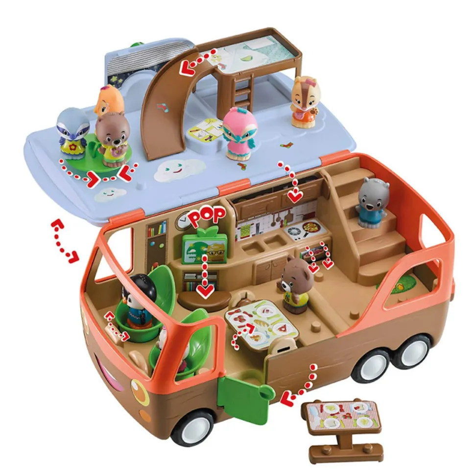 Partez à l’aventure avec le Camping-car des Klorofil !Telle une maison roulante, il y a tout dans le camping-car : le poste de pilotage, une cuisine, un espace repas et une chambre/salle de jeu ! Avec plus de 8 activités surprises et amusantes, le camping-car est le jouet idéal pour des heures de jeu !Contenu : Le camping car des Klorofil, une figurine : Léna de la famille Morse, et une table de pique-nique. Un véhicule avec une figurine idéales pour éveiller l’imaginaire des petits à partir de 18 mois.Dimension de la boite : L33 x H22 x P20 cm.