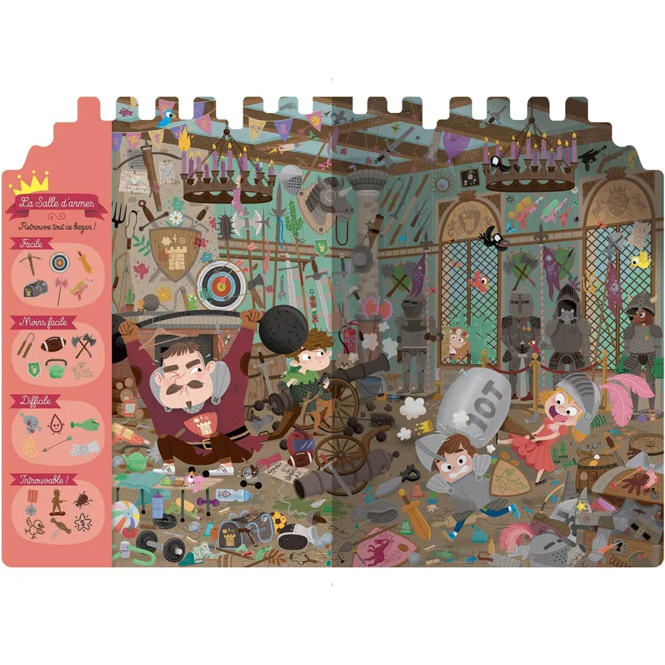 Découvrez le livre jeunesse de la marque Auzou !La célèbre princesse Dubazar, accompagnée de son fidèle acolyte le prince Dufouillis, visitent le donjon du Chevalier Fourbi !Pour ce 6e opus, on retrouve la même activité cherche et trouve, avec 26 éléments à retrouver dans chaque lieu du donjon du Chevalier : la chambre, la salles d’armes, la buanderie, les écuries, les oubliettes, la basse-cour.Ce livre-jeu favorise l’attention, l’observation et la concentration de l’enfant.Pour jouer seul ou à plusieurs. A partir de 3 ans.