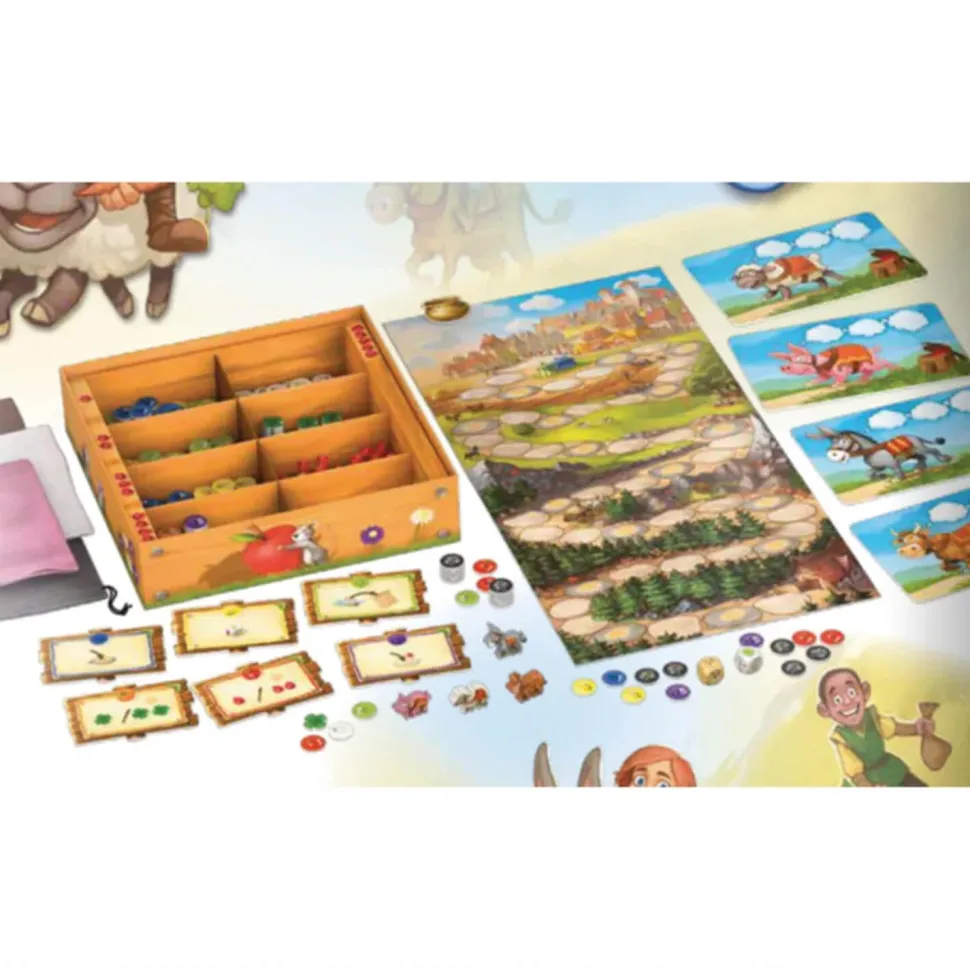 Rendez-vous sur la ligne de départ avec l’âne Charlatan et ses amis et appâtez les animaux avec les bonnes nourritures pour qu’ils avancent. Mais la nourriture dont nous parlons ici n’est pas tout à fait normale. Oh que non, notre nourriture est quelque peu étrange. Elle ne fait pas toujours avancer votre compagnon à quatre pattes à la même vitesse. Il faut donc trouver la bonne combinaison pour être le plus rapide possible. Il arrive aussi parfois qu’une herbe de rêverie se soit aussi égarée dans vos sacs ou que votre animal s’octroie une petite pause … En chemin, vous collectez des rubis avec lesquels vous pourrez acheter une nouvelle nourriture, qui sait ? peut-être encore meilleure. Qui fera avancer son animal rapidement avec la bonne dose de tactique et de chance, passera la ligne en cavalier champion et finira par remporter le chaudron en or ?