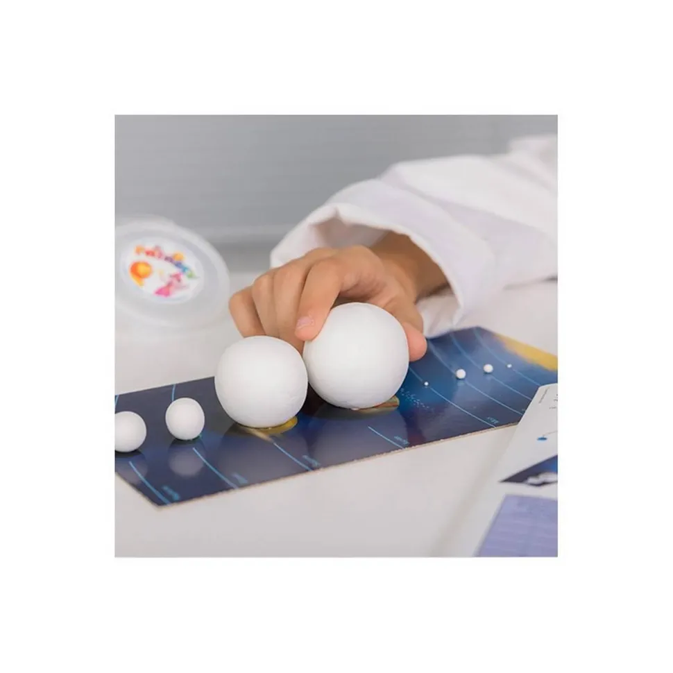 Découvre notre Système Solaire avec 5 expériences fascinantes. Grâce à la Patarev, une pâte à modeler créative, il sera possible de faire une mise à l’échelle des planètes, tout en découvrant leurs particularités, avant de construire un mini Système Solaire et d’observer le principe des éclipses.