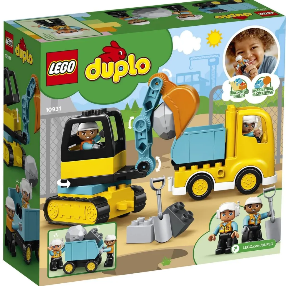 Votre enfant va s’amuser avec le camion et la pelleteuse Lego Duplo.