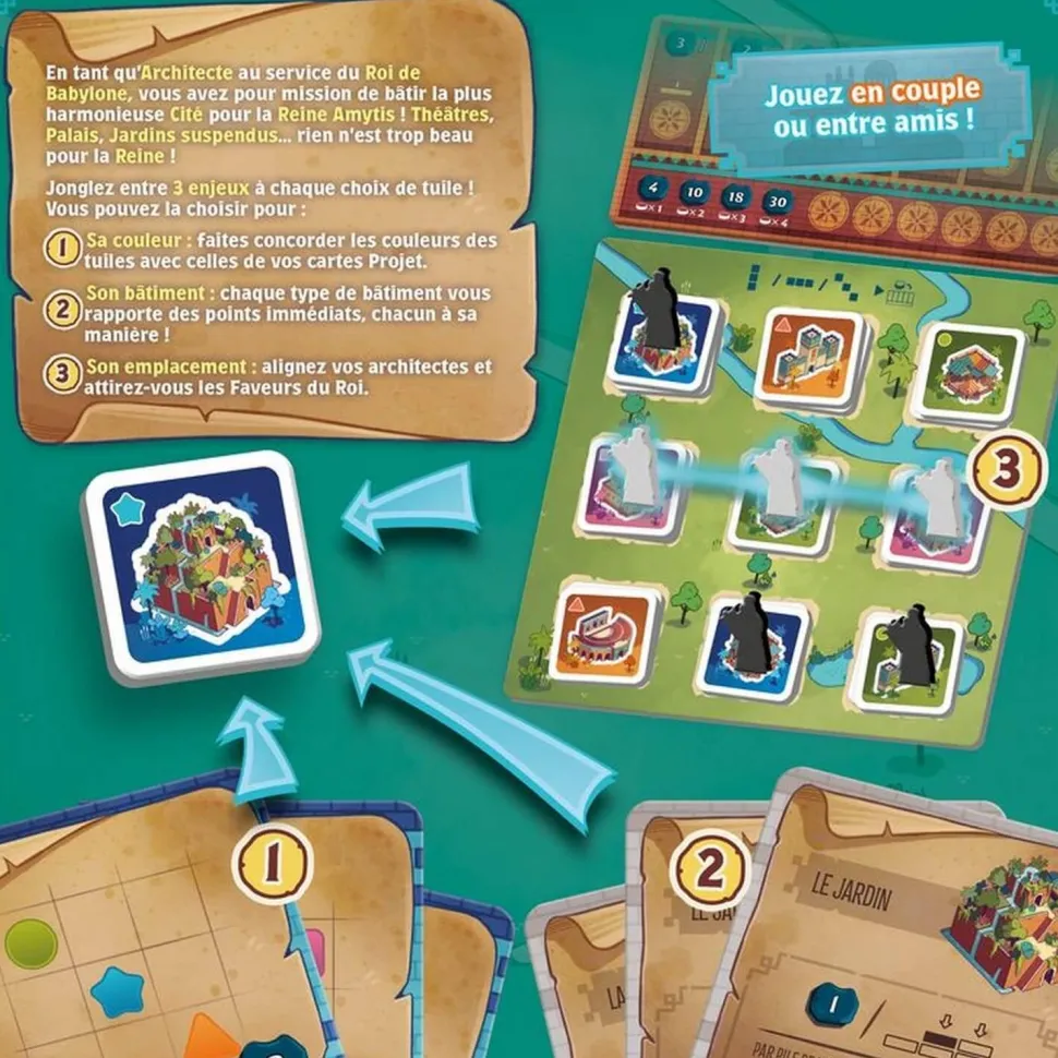 Le Roi de Babylone, souhaite offrir un cadeau mémorable à sa femme, la Reine Amytis : la plus belle cité jamais bâtie ! Il va donc avoir besoin de vous, les Architectes les plus remarquables du pays !