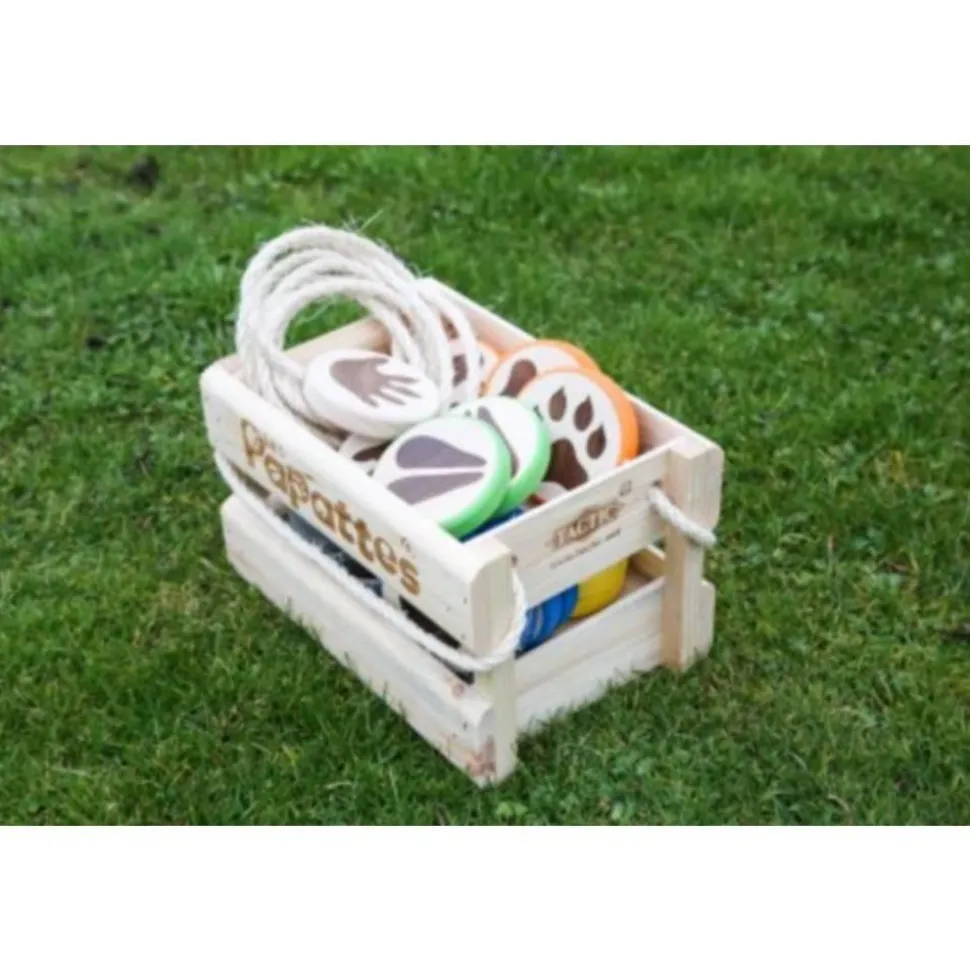 Envie d’un jeu rigolo, actif et complètement déjanté ? Les Papattes est fait pour vous ! Fabriqué en bois et conçu pour bouger, ce jeu invite petits et grands à traverser la rivière en posant leurs “papattes” au bon endroit… sans tomber à l’eau !