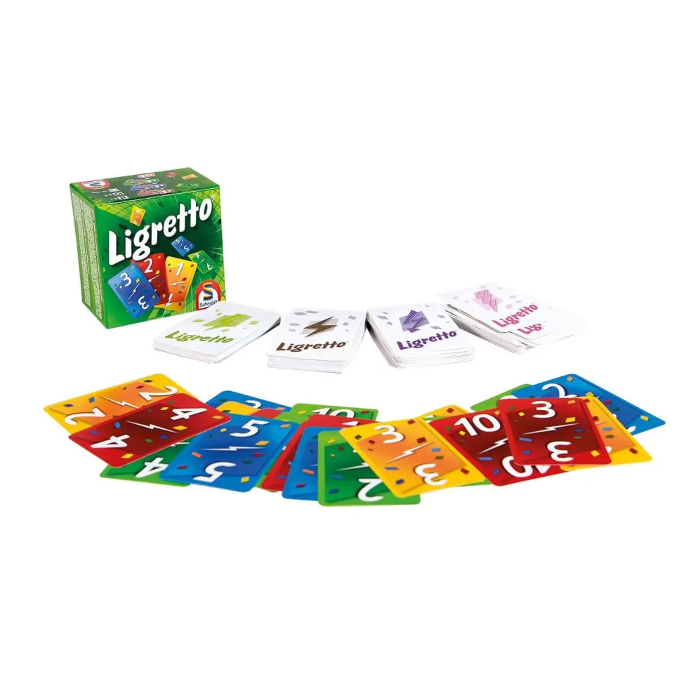 A vos cartes. Prêts. Partez. Des milliers de joueurs s’enivrent chaque année de vitesse aux jeux de cartes. Et pourtant, il ne s’agit là que de poser aussi rapidement que possible le plus de cartes de la même couleur dans l’ordre ! Le hic est que tout le monde joue en même temps. Alors, si l’on possède en plus trois des nouvelles boîtes de Ligretto avec des couleurs différentes, douze joueurs au maximum peuvent se placer simultanément sur la ligne de départ. Il y a du record dans l’air ! Un jeu de cartes ultra-rapide qui ne doit manquer dans aucune collection de jeux et combinant à la fois vitesse, réflexion et réaction au quart de tour. Fascinant, divertissant et pas du tout compliqué. Nombre de joueurs : 2 à 4.Retrouvez le Ligretto bleu sous la référence Schmidt-01107 et le Ligretto rouge sous la référence Schmidt-01307.Dimensions de la boîte : 10 x 10 x 6.8 cm.