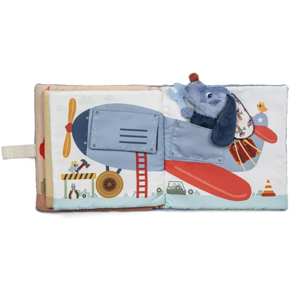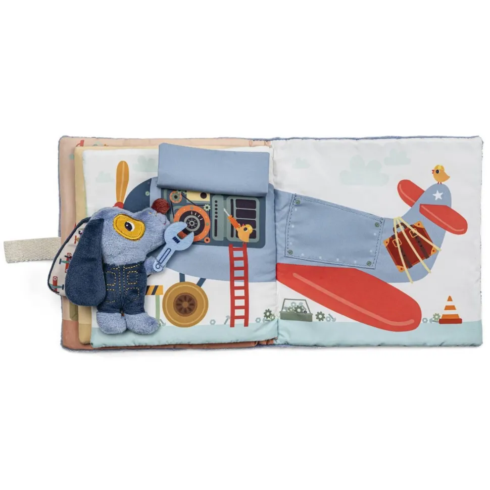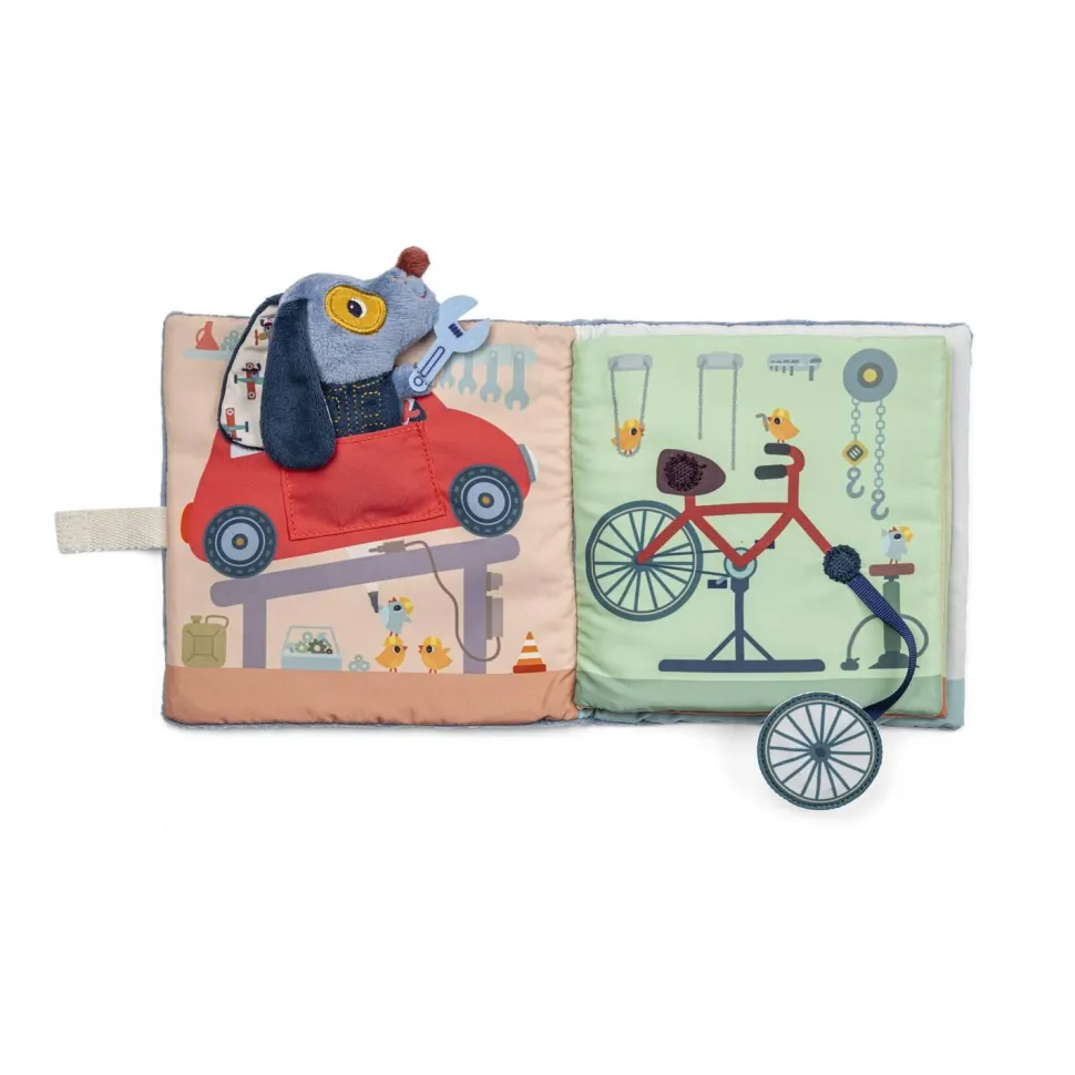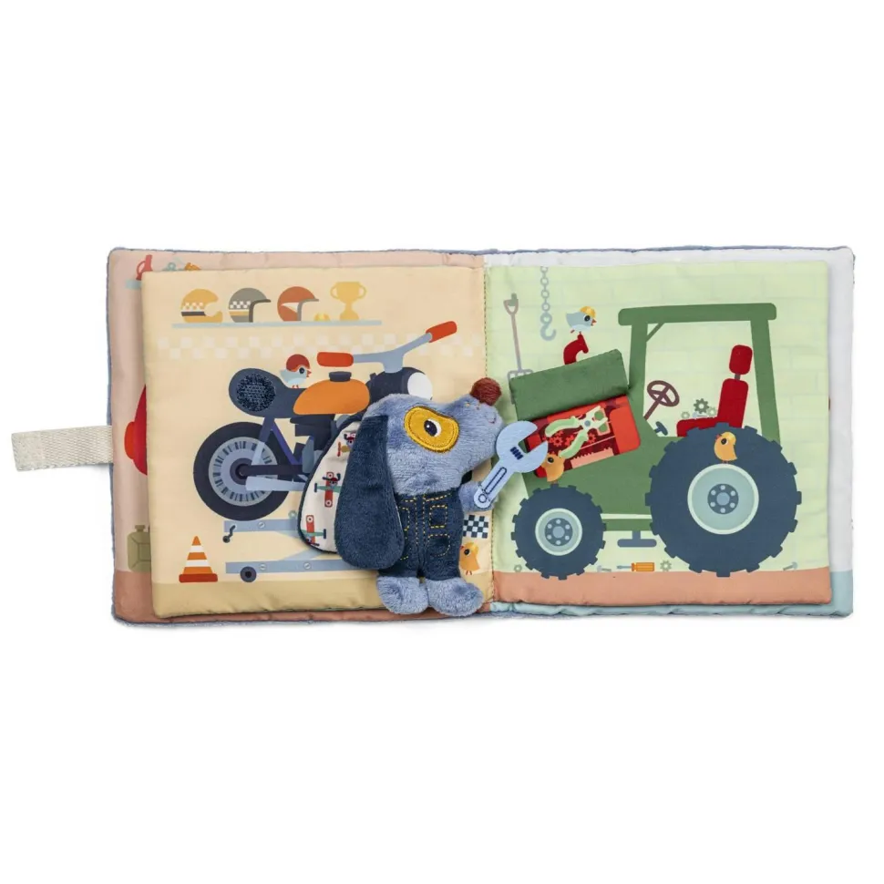 Les adorables illustrations plongent votre enfant au cœur d’un garage en effervescence, où évolue notre chien bricoleur. Car avant de s’envoler avec son avion, il faut bien une petite révision ! Et lorsque quelque chose casse ou ne fonctionne plus, on prend ses outils et on répare pour prolonger l’utilisation. Et ça, petit Jules et votre enfant l’apprendront à leur rythme grâce à leur livre en tissu.