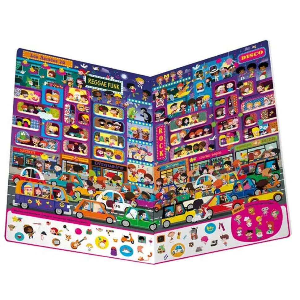 Pour des heures de jeu en famille !Un « Cherche et Trouve » en format géant, regroupant 50 éléments dont 10 personnages récurrents à trouver à chaque page. Parcourez 9 époques remplies de détails : Préhistoire, Égypte, Rome Antique, Moyen-âge, Renaissance, Versailles, Belle époque, Années 70 et futur.Grâce aux illustrateurs talentueux, vous aurez un bon sens de l’observation.Nombre de pages : 18.Largeur : 46,6 cm.