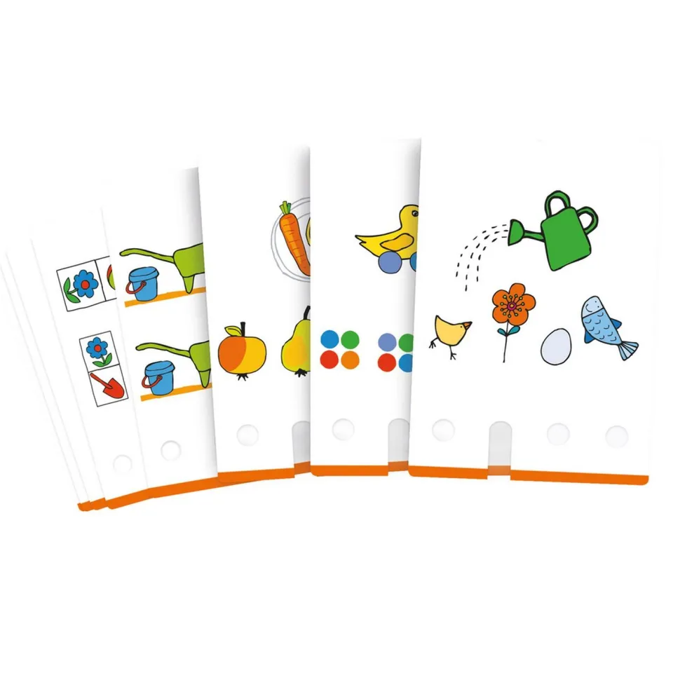 Les jeux d’énigmes LogiCASE sont colorés, stimulants et variés ! Le but du jeu est de déchiffrer et résoudre diverses énigmes. À l’aide du stylet en bois, l’enfant peut vérifier lui-même s’il a trouvé la bonne solution : est-il possible de retirer la carte ou pas ? Cette activité renforce la motivation et la compétence dans la résolution de problèmes en toute autonomie. L’énigme est résolue ? Le prochain défi vous attend déjà ! Les extensions LogiCASE complètent les starter sets de manière simple et flexible avec différents thèmes et niveaux de difficulté. L’activité reste captivante !