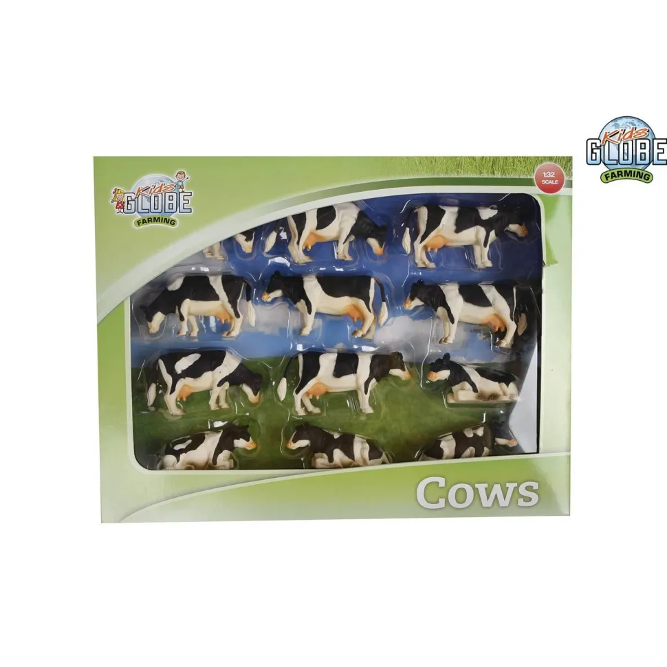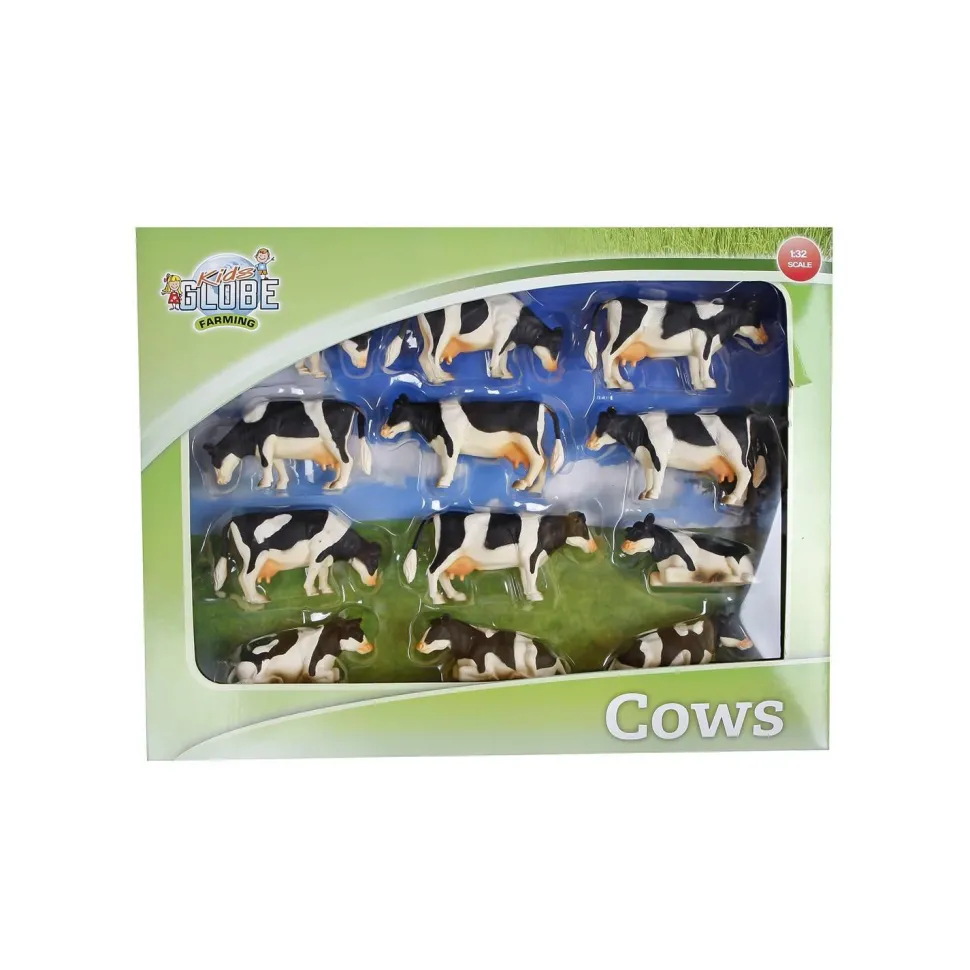 Découvrez ce set de 12 vaches noires et blanches de la marque Kids Globe Farming : 8 vaches debout et 4 vaches couchées. Ces vaches sont compatibles avec les étables / stabulations à l’échelle 1/32 du fabricant Kids Globe. Echelle 1/32. Dimensions : 9 x 2 x 5 cm A partir de 3 ans.