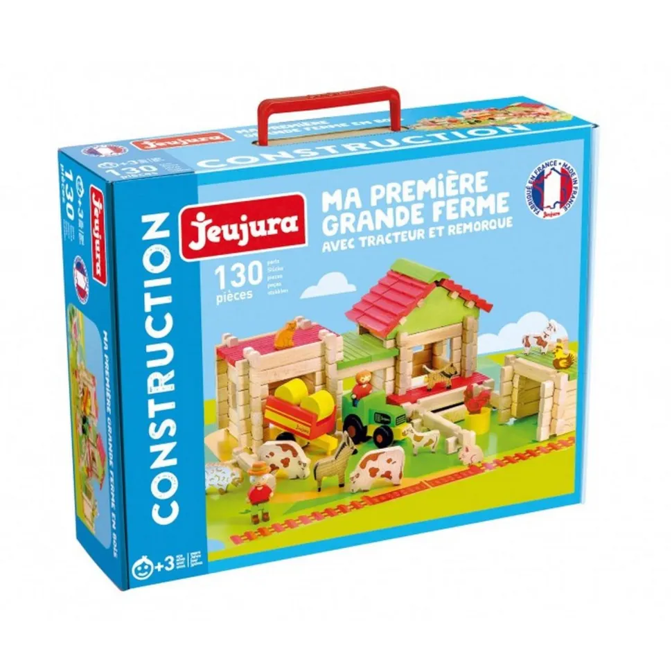 Ma Première Grande Ferme avec Tracteur et Remorque – 130 pièces est livrée avec un tapis de jeu et une notice de montage très facile d’utilisation pour les plus jeunes. Sa valisette de rangement est très pratique pour la transporter partout.