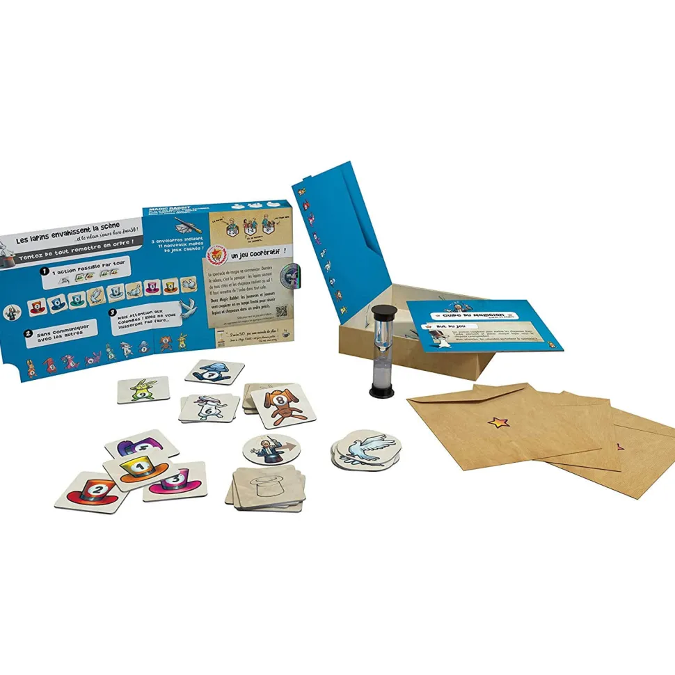 Dans Magic Rabbit, les joueuses et joueurs vont coopérer en un temps limité pour réunir lapins et chapeaux dans un ordre précis. Votre mission : Coopérez,sans communiquer……en 2min30 !