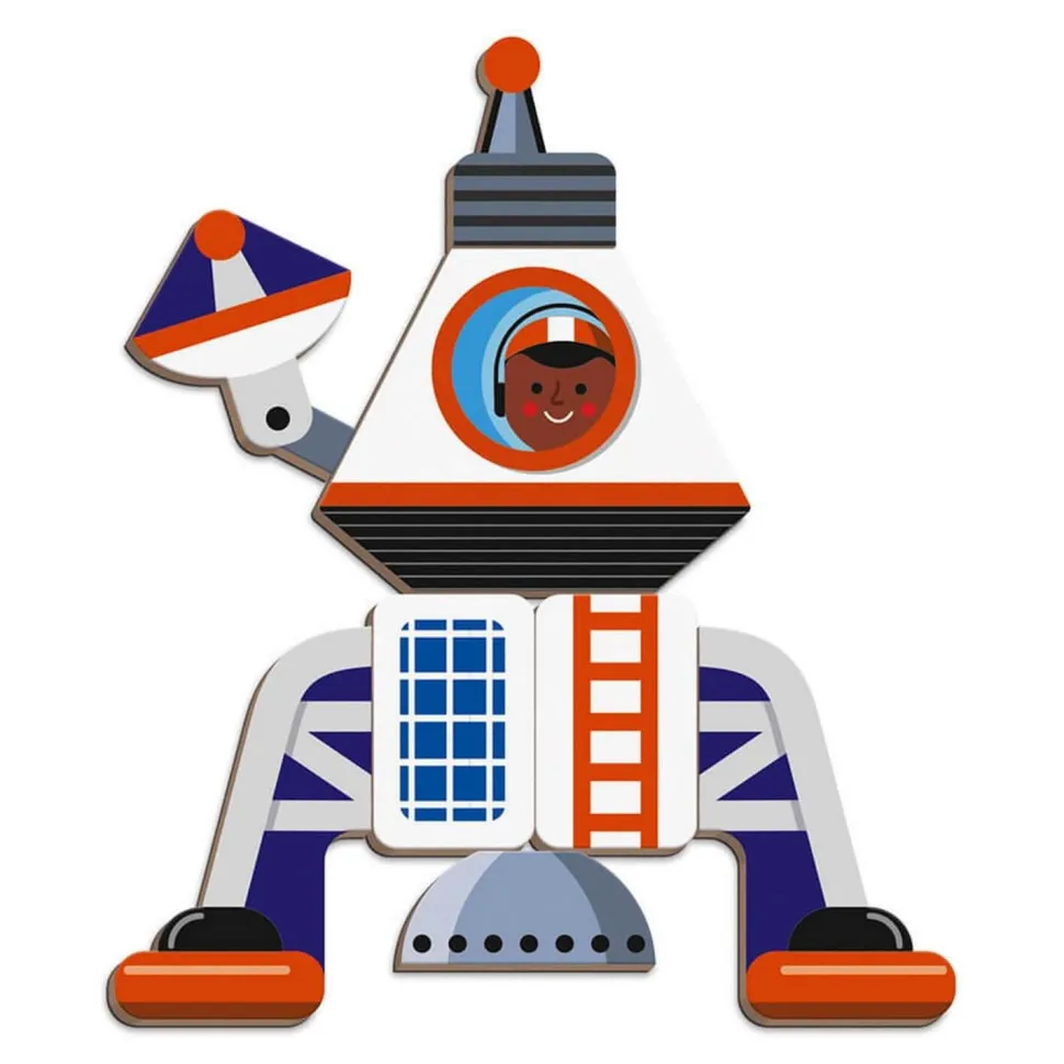 Ce jeu en carton transportera les petits à partir de 3 ans dans l’univers fascinant de l’espace et des planètes grâce à 52 magnets et 18 cartes. A l’intérieur, une scène magnétique permet de recomposer le véhicule spatial indiqué sur la carte à l’aide des magnets. L’enfant pourra également s’amuser à mélanger les différentes pièces entre elles pour créer des scènes rigolotes puisqu’elles sont toutes interchangeables ! Permet à l’enfant d’améliorer son imagination et sa motricité fine.