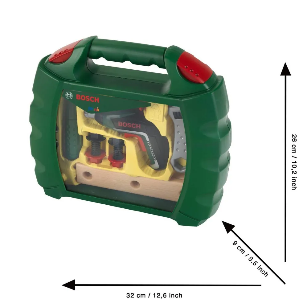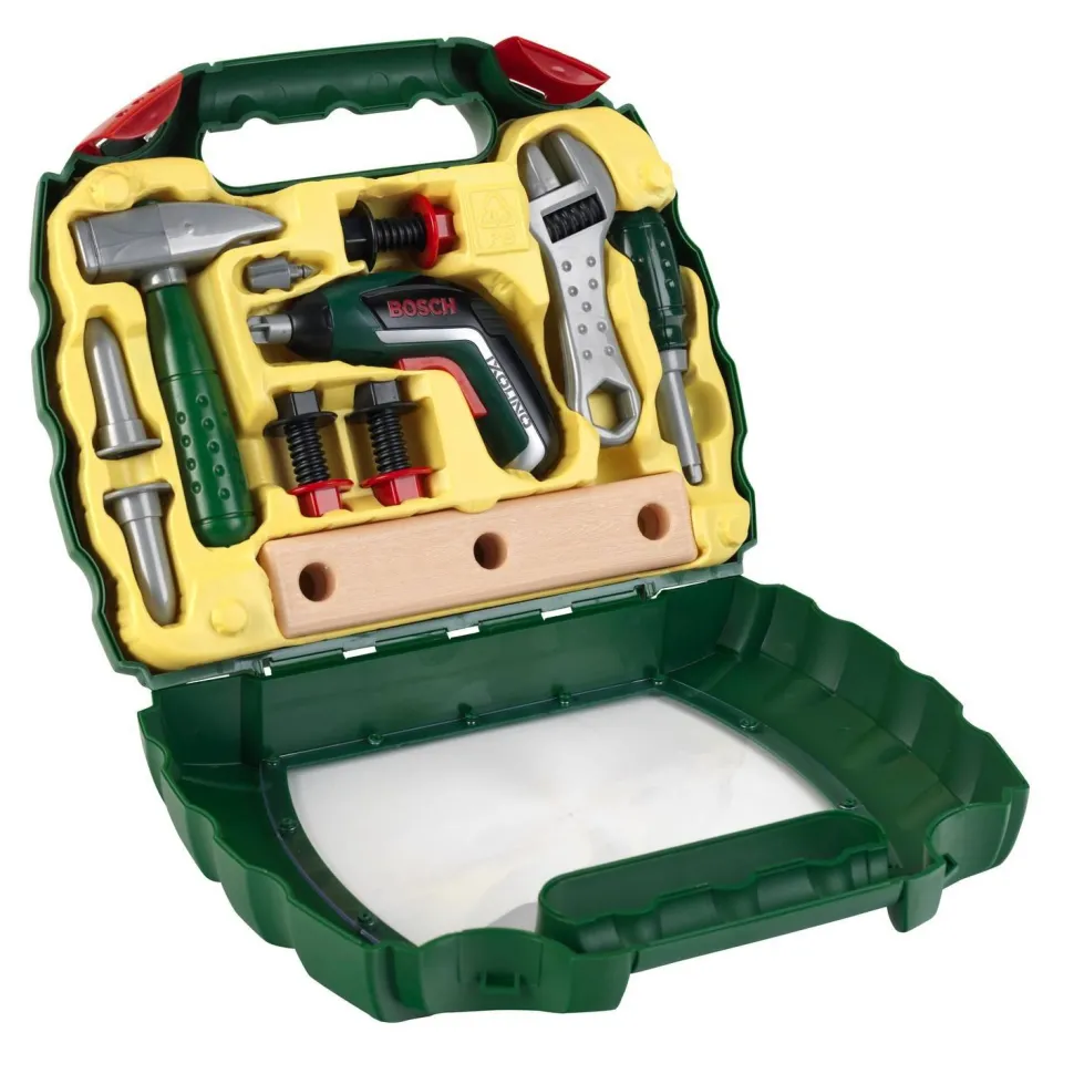 Cette mallette vitrine sous licence BOSCH comprend les accessoires indispensables pour apprendre à bricoler comme les grands :