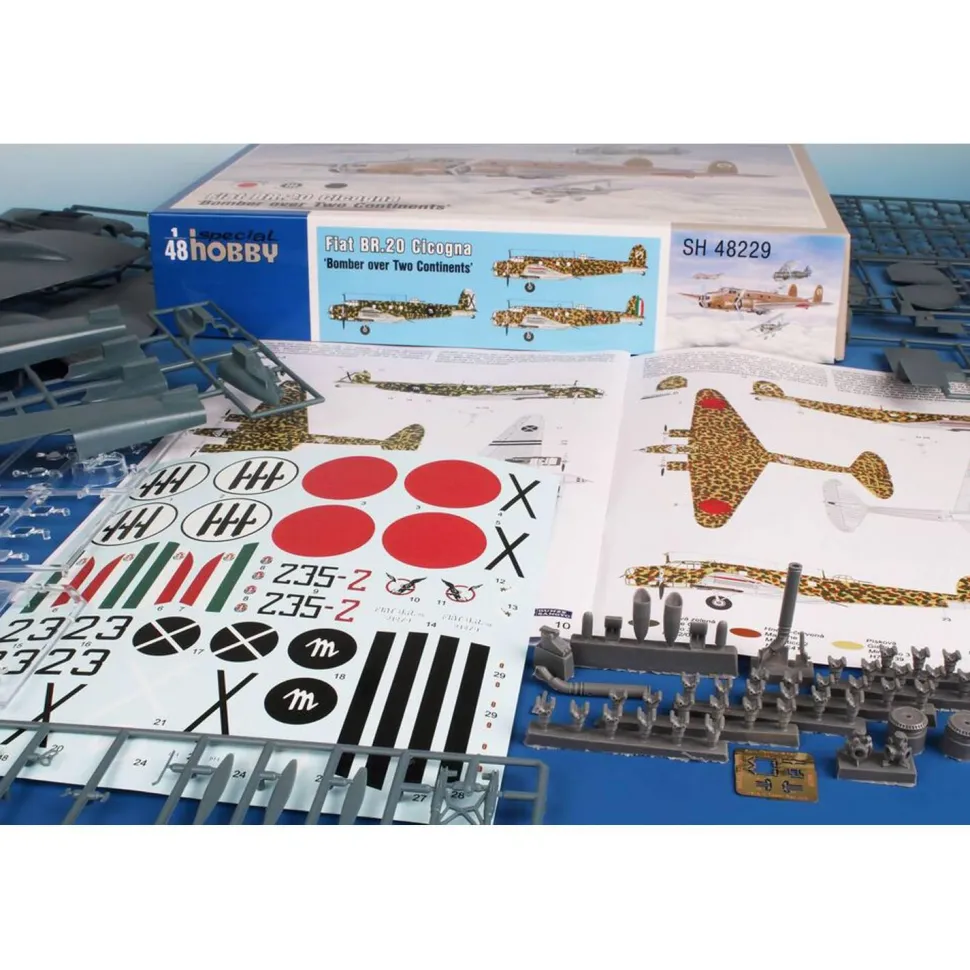 Le Fiat BR.20 Cicogna (cigogne en italien) était le seul bombardier bimoteur italien en service dans la Regia Aeronautica pendant la Seconde Guerre mondiale. En 1934, le ministère de l’Air italien émit des spécifications pour un nouveau bombardier bimoteur lourd. Le premier prototype BR.20 décolla pour la première fois le 10 février 1936 et fut mis en service en septembre de la même année. Les premiers lots de production avaient une tourelle dorsale de type Breda DR avec deux mitrailleuses de 7,7 mm. Les lots ultérieurs reçurent la tourelle dorsale Breda M.1 avec une mitrailleuse de 12,7 mm. Par rapport au concurrent SM.79, le Fiat BR.20 avait une portée plus courte, mais une charge utile plus importante et un stockage de bombes plus adapté. De ce fait, il atteignit une précision de bombardement bien supérieure à celle des autres bombardiers italiens. L’Italie testa ses BR.20 Fiat lors du déploiement