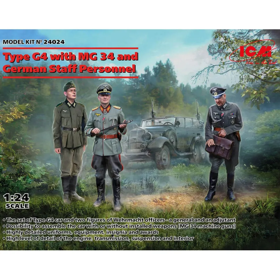 Maquettes et Figurines Militaires de la marque ICM.Contient: 1 Véhicule,2 Officiers et 1 Général Allemand.Echelle : 1:35.Peintures et colle non fournies.
