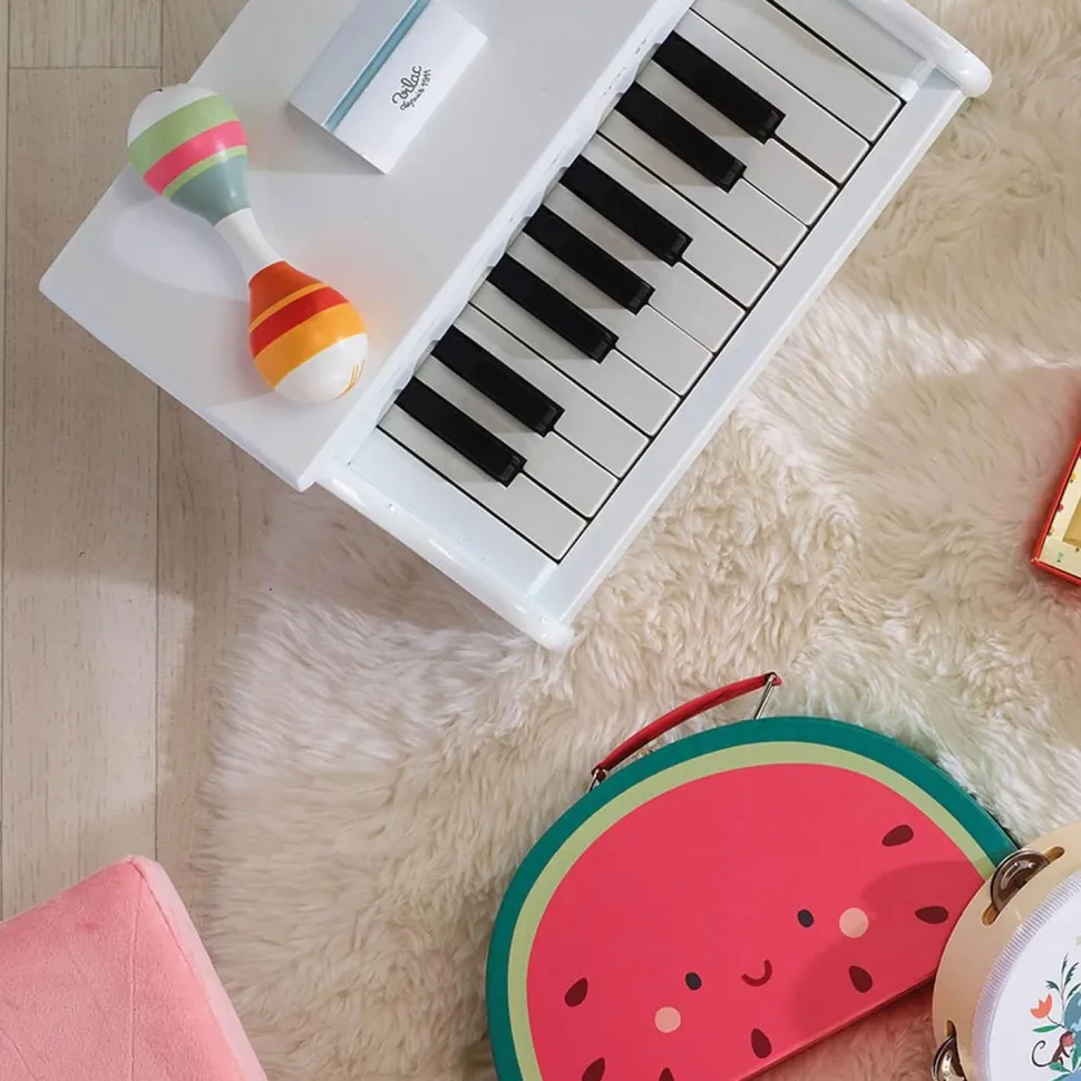 Ce jeu apprend à votre enfant à développer sa motricité fine, encourage sa créativité, développe des compétences auditives et permet une initiation aux sons et aux rythmes.