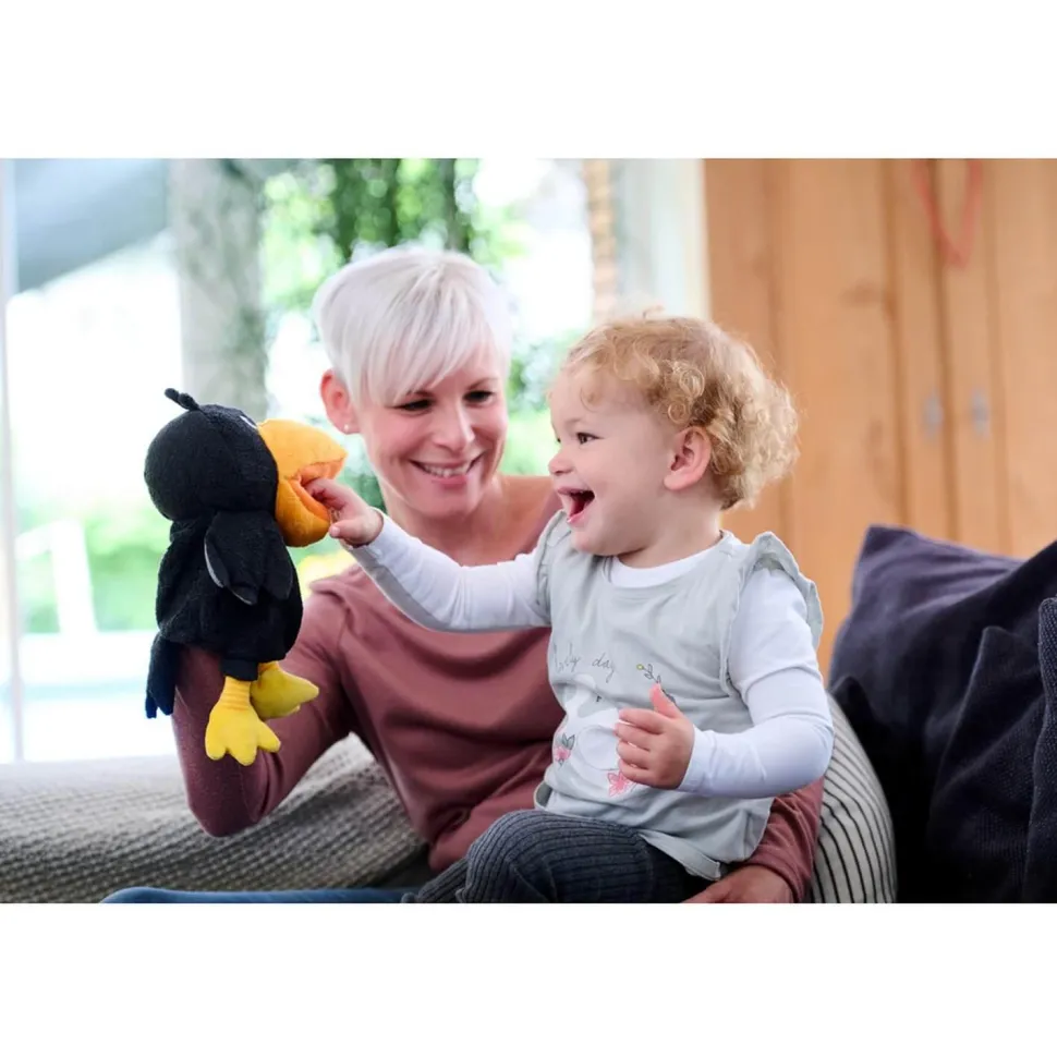 Découvrez la marionnette corbeau Théo de la marque Haba.