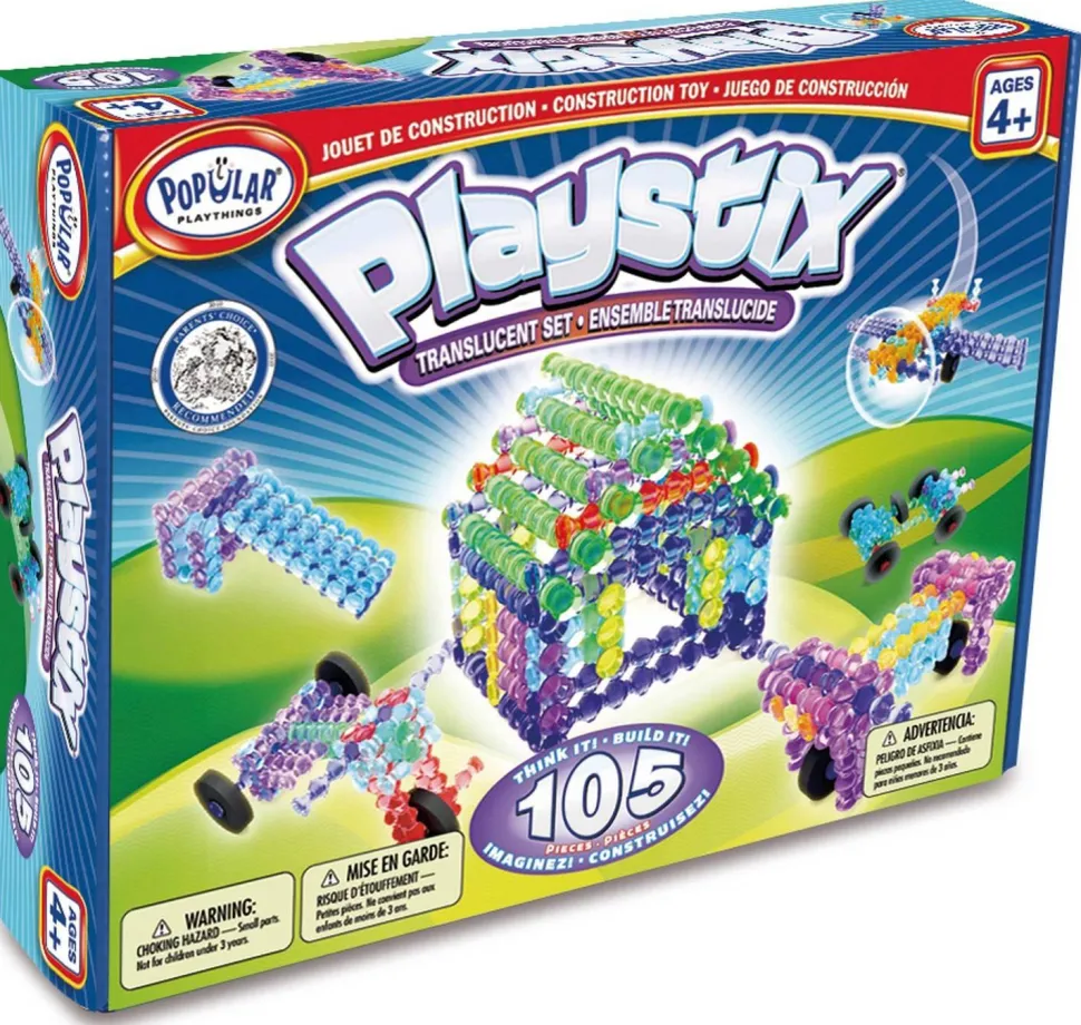 Description du produit : Matériel de construction Playstix transparent, set 105 pièces