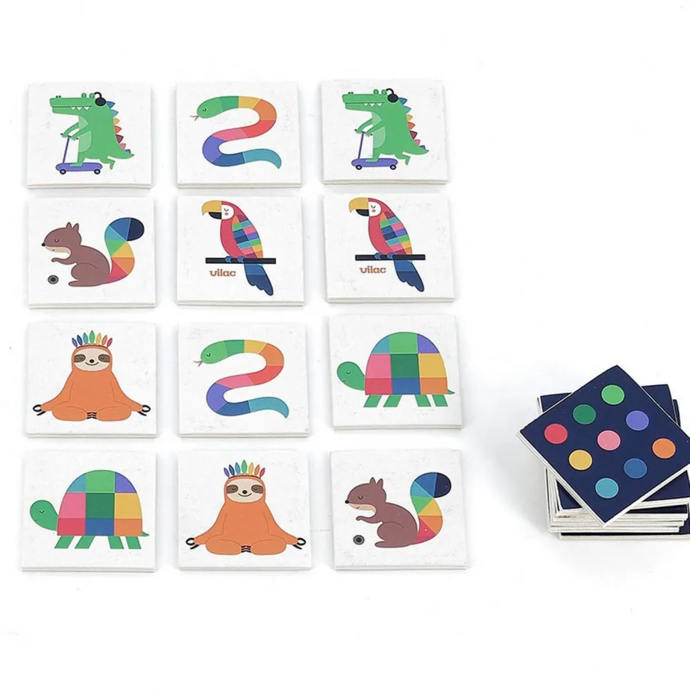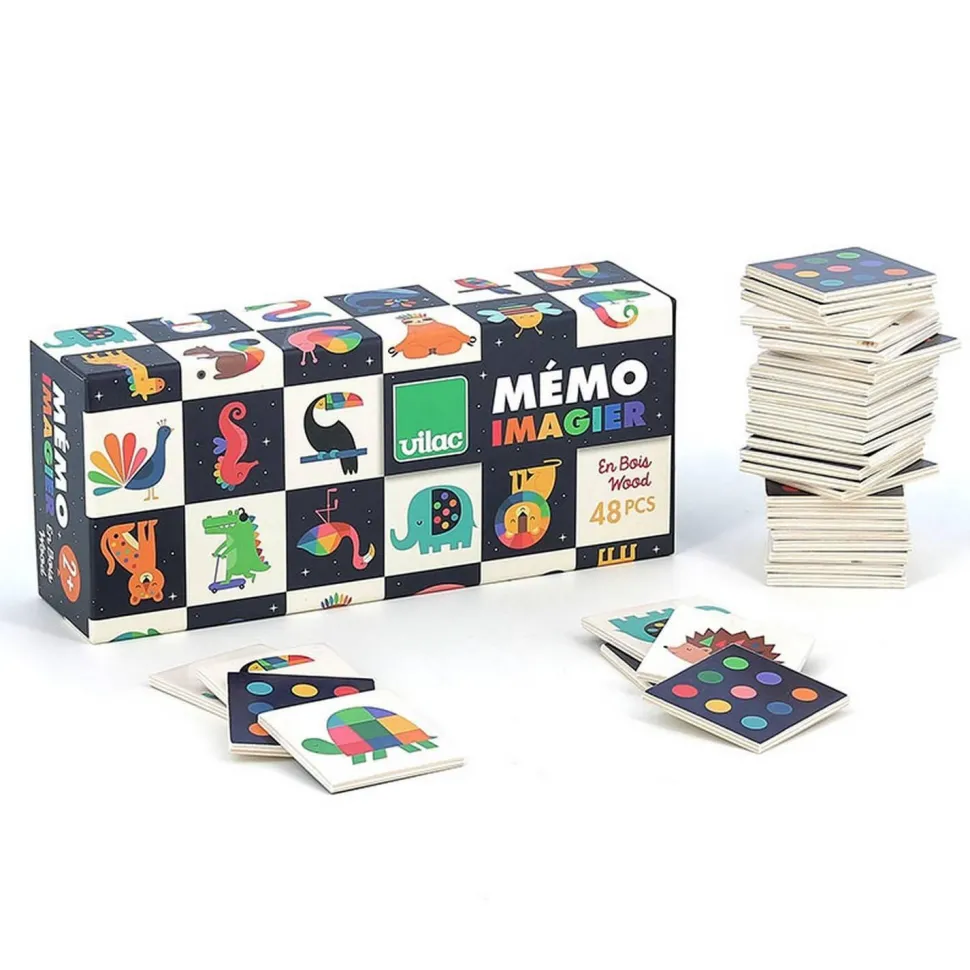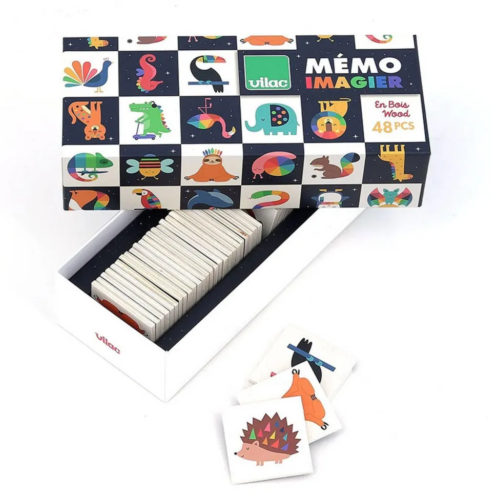 Découvrez ce beau Mémo imagier en bois, Les animaux de la marque Vilac illustré avec talent par Andy Westface : un jeu de mémoire qui permettra aux enfants d’enrichir leur vocabulaire et leur mémoire pour reconstituer les 24 paires ! Objectif du jeu ? Retrouver le plus grand nombre possible de paires de cartes identiques grâce à la mémoire visuelle.