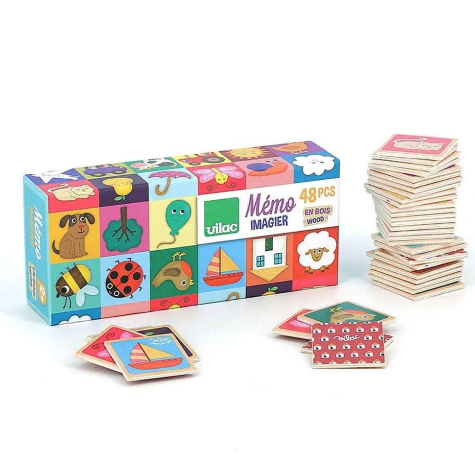 Découvrez ce beau Mémo Imagier illustré avec talent par Mélusine Allirol de la marque Vilac : un jeu de mémoire qui permettra aux enfants d’enrichir leur vocabulaire et leur mémoire pour reconstituer les 24 paires !