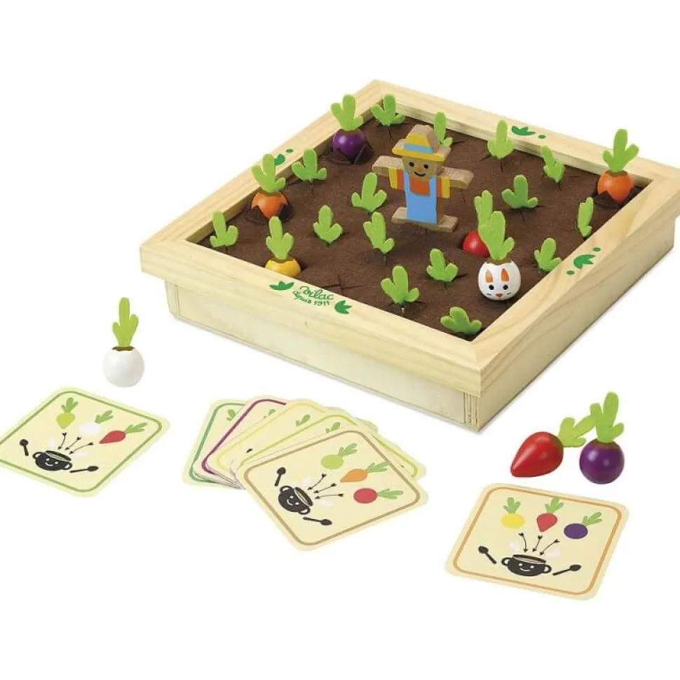 Découvrez ce mémo Jour de récolte – Mémotager de la marque Vilac adapté dès 3 ans. Il s’agit d’un mémo original adapté pour les touts-petits. retrouvez les 25 légumes cachés dans le potager.Un mémo original élaboré au milieu du potager! Cueillez vos légumes et retrouvez ceux qui composent votre soupe ! Coffret en bois et feutrine, livré avec 7 cartes « recette » – 25 légumes en bois et feutrine. A partir de 3 ans.Les règles sont simples : piochez 7 cartes sur lesquelles sont dessinés les trois légumes nécessaires à la préparation de la soupe. Pour gagner, il faut retrouver les trois légumes indiqués sur cette carte en tirant sur la feuille en feutrine. Si vous vous trompez, replacez ce légume.Ce jeu est idéal pour exercer la mémoire des plus petits tout en s’amusant. Dimensions : 24 x 24 x 10 cm.