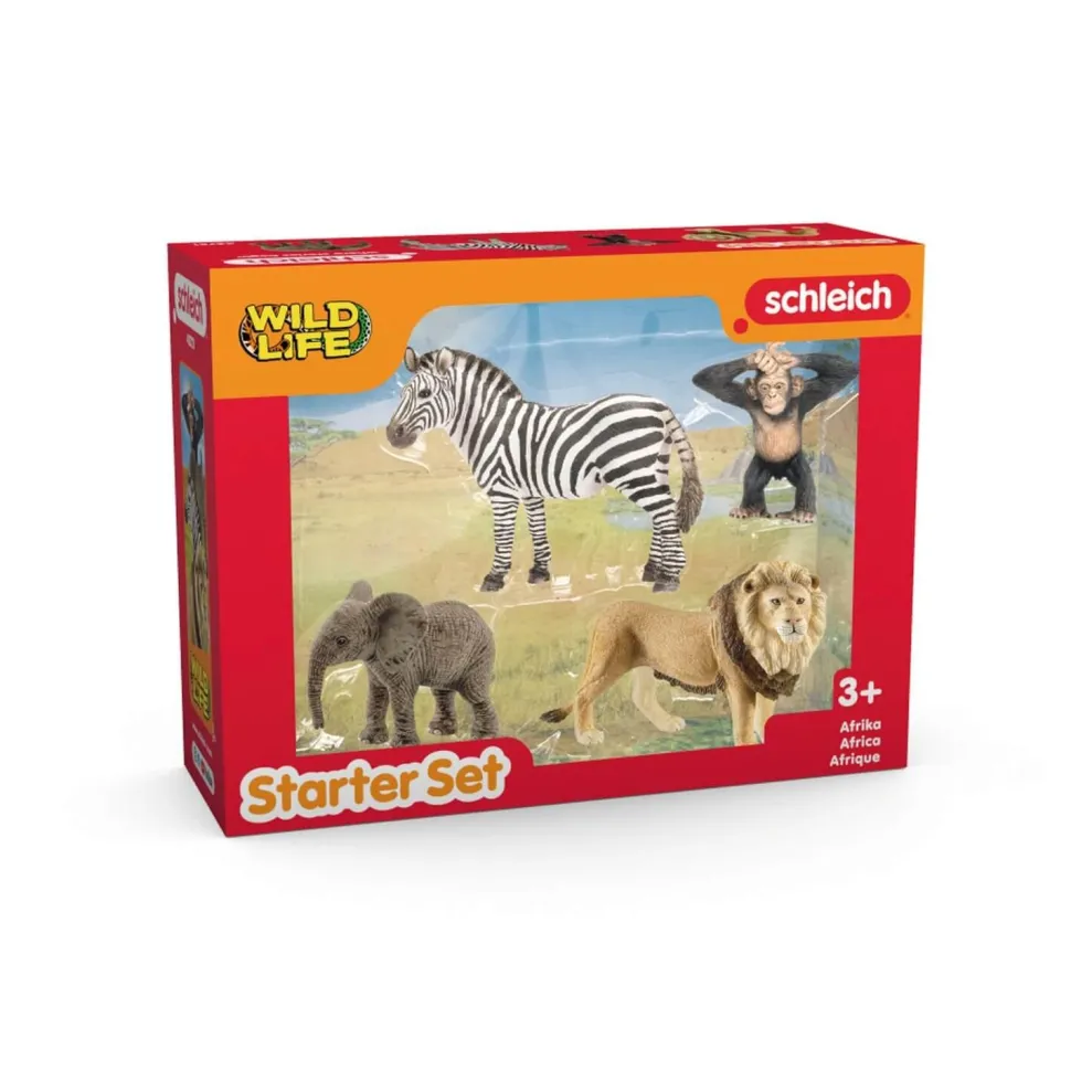 Contient : 1 x lion, 1 x zèbre, 1 x éléphanteau d’Afrique, 1 x jeune chimpanzé
