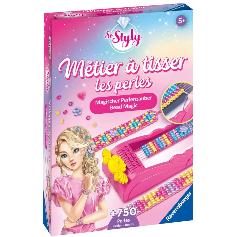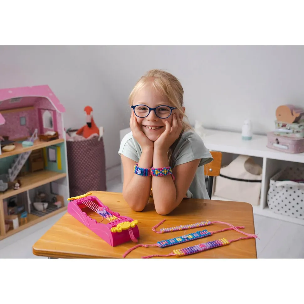 Créez votre propre collection de bijoux ! Recommandé pour les enfants à partir de 5 ans, ce métier à tisser va leur permettre de tisser des bracelets tous plus féériques les uns que les autres. La préhensions est facilitée grâce à une longue aiguille en plastique et de grandes perles aux couleurs chatoyantes. La notice détaillée est conçue pour guider tout au long de la création. Une fois vos bracelets terminés, vous pourrez les arborer fièrement à votre poignet ou les offrir en cadeaux à vos meilleures amies ! Contenu du coffret : – 1 métier à tisser- 750 perles aux formes et aux couleurs différentes- des perles bijou- du fil- 1 aiguille en plastique- 1 notice détaillée Dimensions de la boîte : 27.5 x 19 x 5.5 cm.